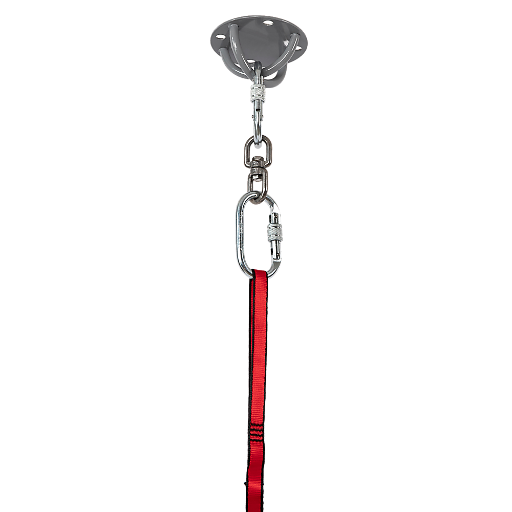 - Includes: Swivel, spanset, aerial ring, metal plate, carabiner