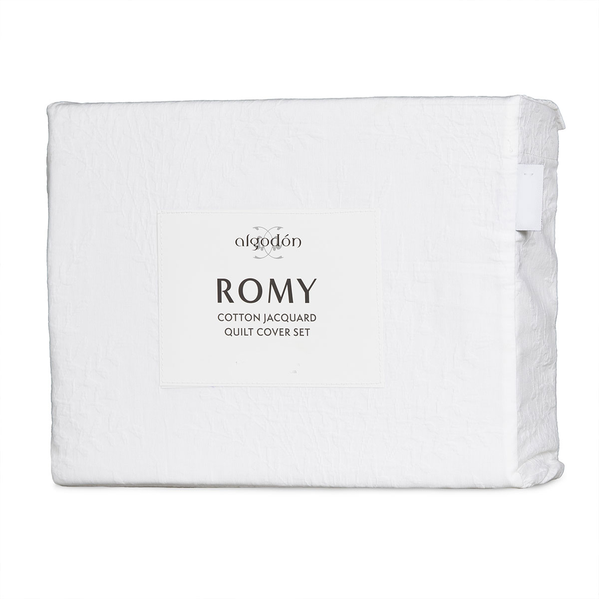 Algodon Romy White Cotton Jacquard Quilt Cover Set King