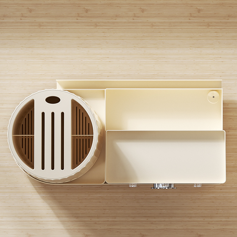 This all-in-one kitchen countertop organizer is designed to help you keep your cooking space tidy and efficient. It combines multiple storage functions into a sleek, space-saving unit, making it easy to access utensils, spices, and other kitchen essentials.