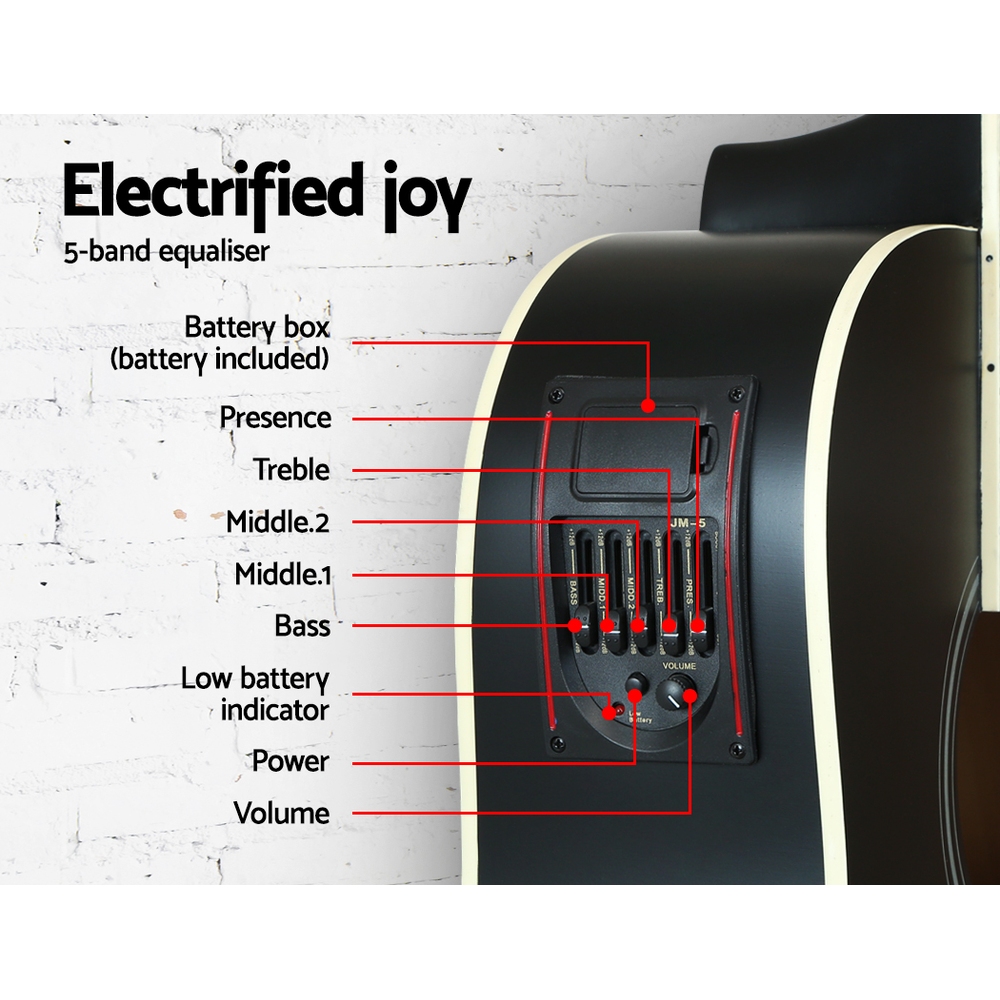 This 41-inch electric acoustic guitar features a professional 5-band equalizer, making it suitable for performers at all levels. Its sleek design and high-quality construction provide excellent sound quality and aesthetic appeal, perfect for both casual playing and performances.