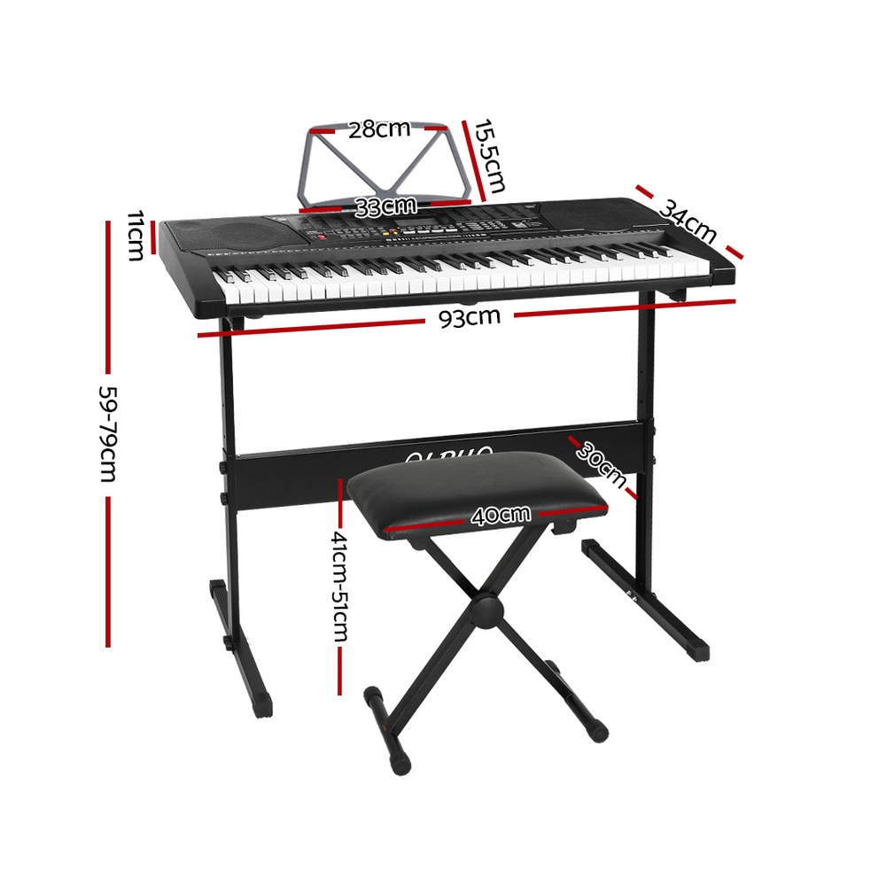 Alpha 61 Keys Electronic Piano Keyboard Digital Electric w/ Stand Stool Lighted