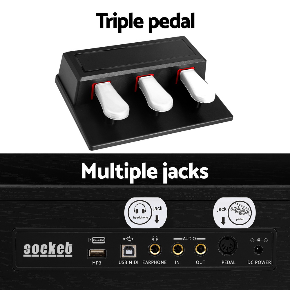This electronic keyboard features 88 semi-weighted keys and a variety of built-in functions to support your musical journey. It offers a wide range of sounds, rhythms, and demo songs, along with recording and playback capabilities. The keyboard includes essential accessories such as a stand, sheet music holder, and sustain pedal, making it suitable for both beginners and experienced players.