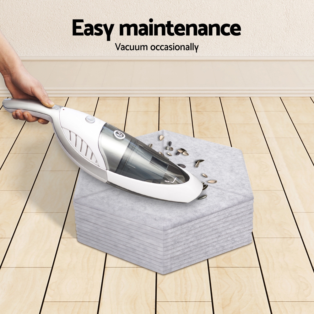 This set includes 12 soundproofing tiles designed to improve acoustic quality in various spaces. Made from high-density foam, these tiles effectively reduce echo and noise, creating a quieter environment suitable for recording, streaming, or working from home. The tiles feature a hexagonal shape and a self-adhesive backing, allowing for easy installation and flexible arrangement to suit different room layouts.