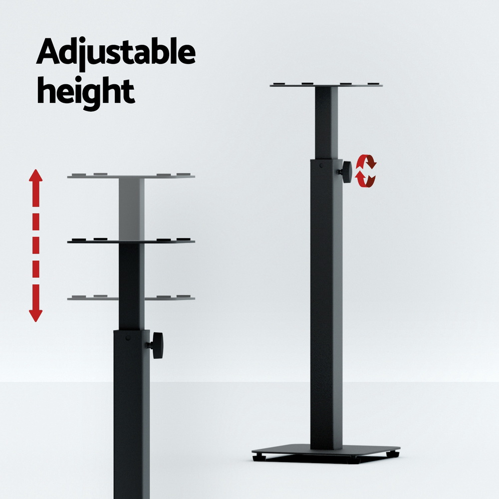 Enhance your audio setup with these adjustable speaker stands, suitable for monitors and surround speakers. Constructed from durable steel with a sleek finish, they offer stability and style. The stands feature adjustable height, versatile feet options, and integrated cable management to ensure optimal placement and a tidy environment. Easy to assemble, making them ideal for audio enthusiasts.