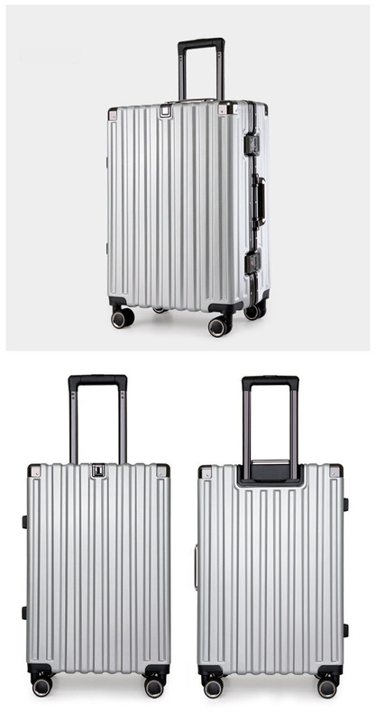 This 22-inch spinner suitcase features a durable aluminum alloy hard-shell exterior with a sleek silver finish. It is designed to provide reliable protection for your belongings while offering ease of mobility with 360-degree spinner wheels. Equipped with TSA-approved locks, it ensures security during travel, making it suitable for frequent travelers seeking a combination of style and functionality.
