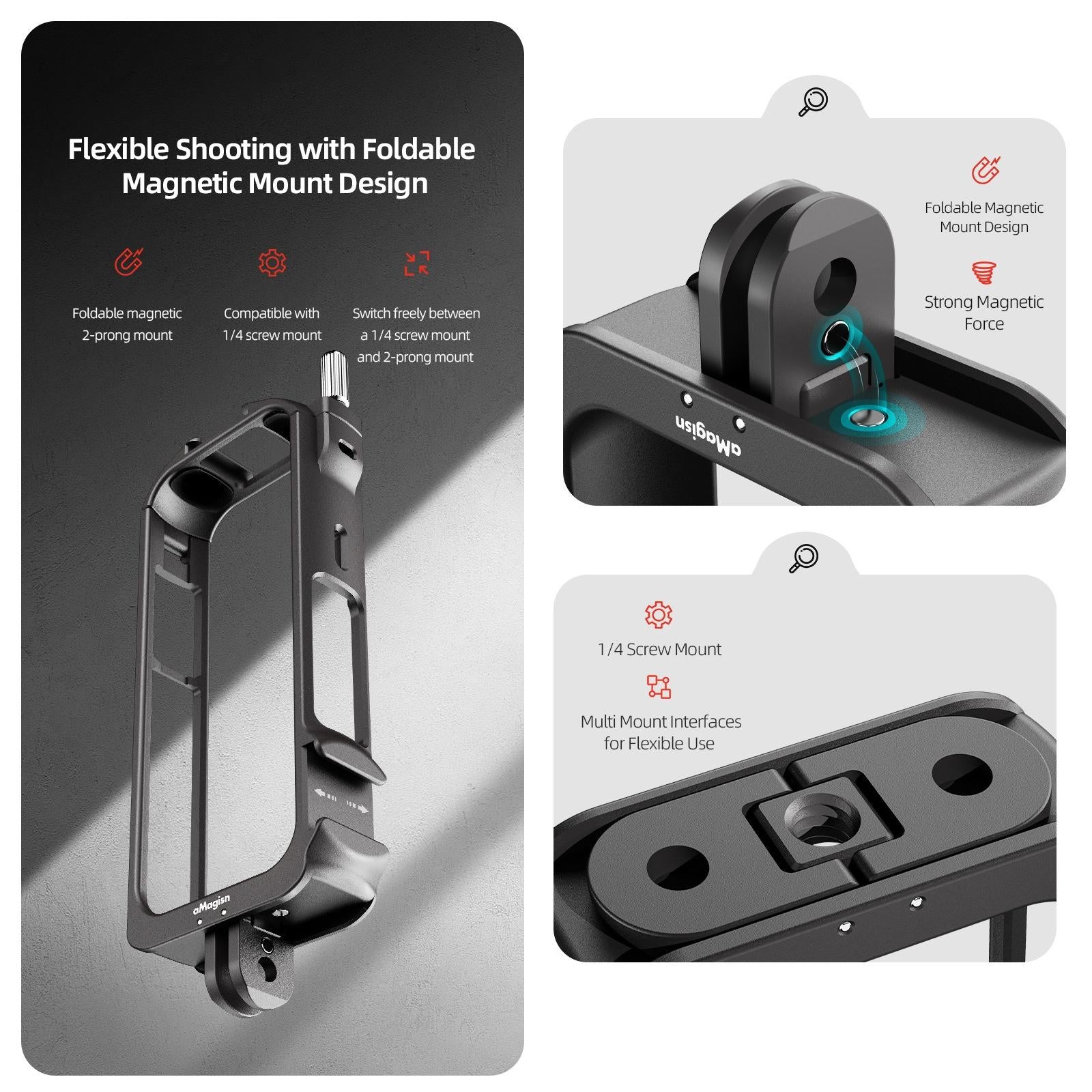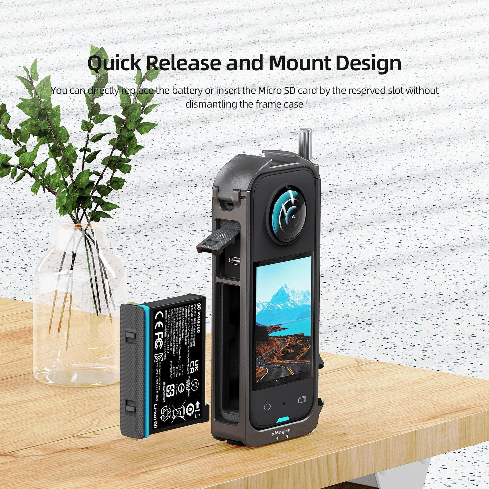 This protective frame is designed specifically for the Insta360 X3 camera, providing a lightweight and durable solution for outdoor and active use. It features multiple expansion options and easy access to battery and memory card slots, ensuring convenience and security during filming.