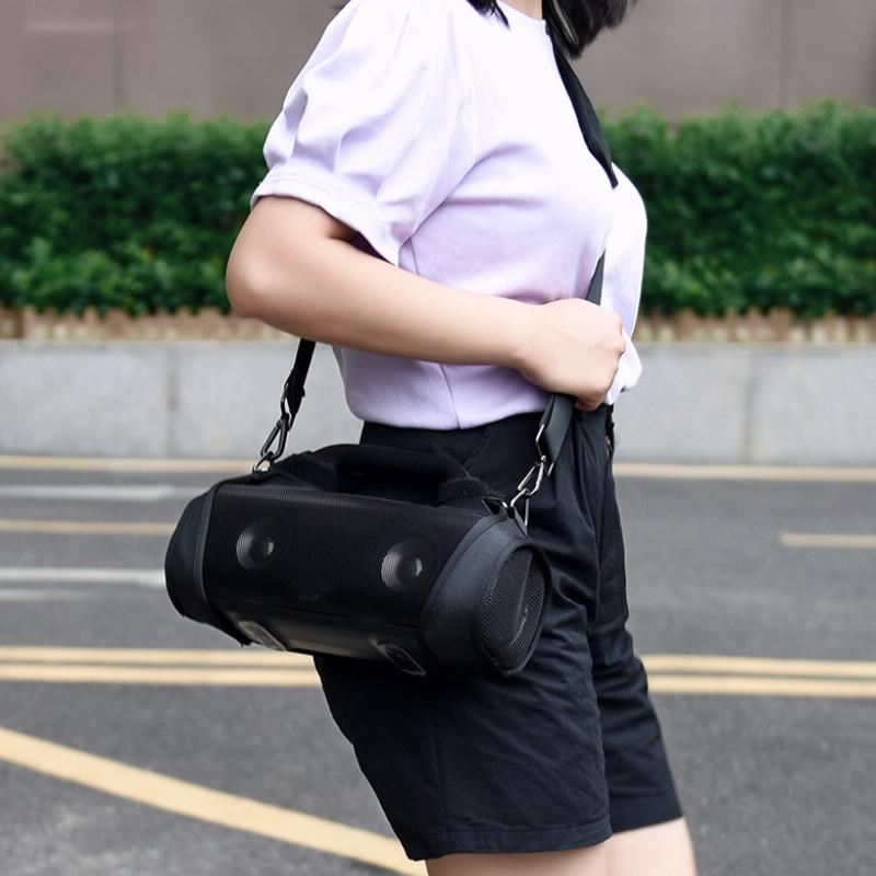This protective carrying case is designed specifically for the Soundcore Motion Boom speaker. Made from durable nylon cloth, it offers excellent protection against shocks and falls. The case features a single shoulder strap for comfortable cross-body carrying and a large-hole mesh design to ensure optimal sound quality. Its lightweight construction makes it easy to carry without adding unnecessary bulk.