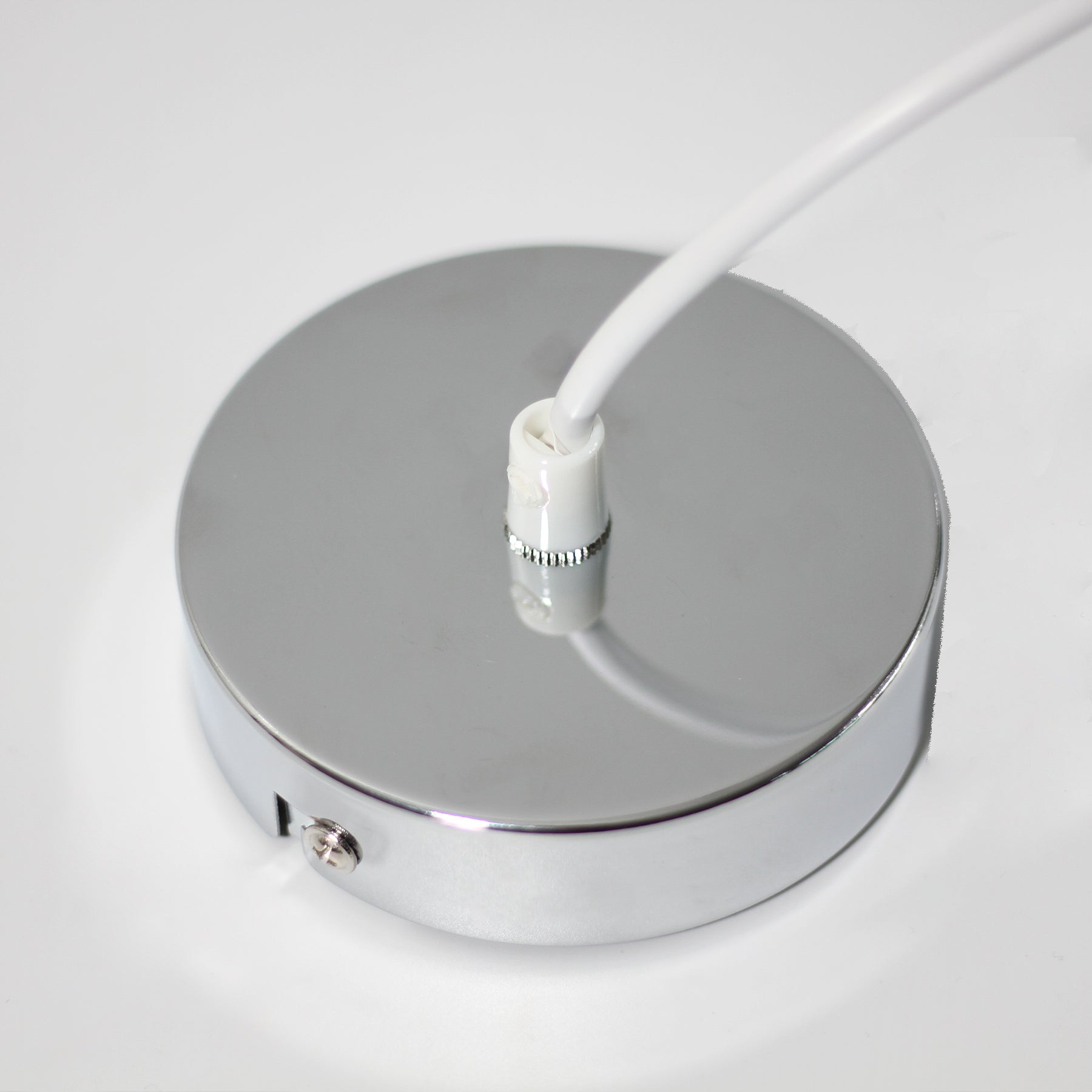 The glass pendant light features a sleek design with a white glass shade complemented by a shiny chrome ceiling mount and pendant holder. It is suitable for various interior styles and can be used individually or in groups to enhance the ambiance of a room. When lit, the frosted glass shade emits a soft, soothing glow, adding a touch of elegance and texture to the space.
