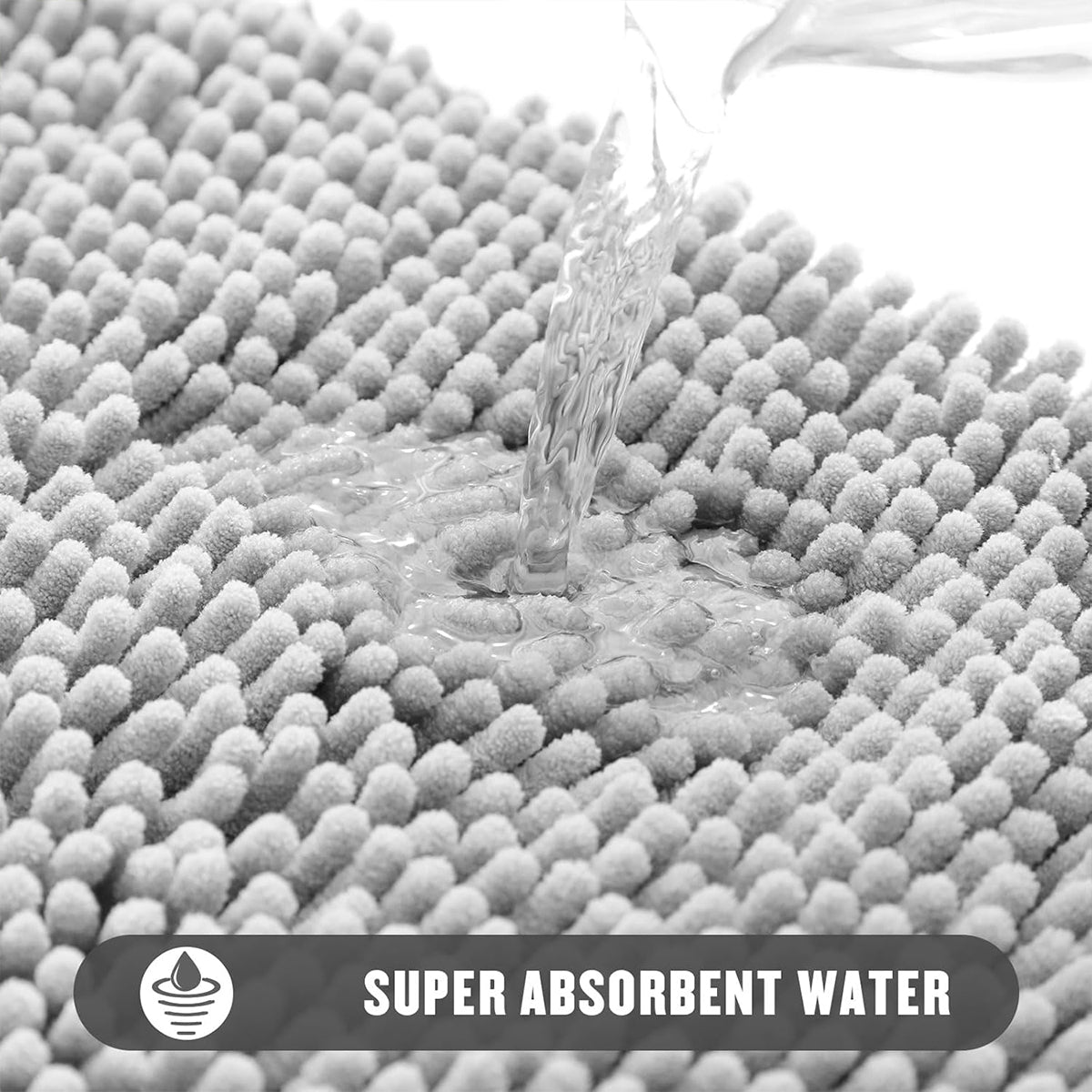 This water-absorbing floor mat is designed to keep your floors dry while providing a soft and comfortable surface. Suitable for bathrooms, kitchens, or other areas prone to water spills, it features quick-drying, highly absorbent chenille material and a non-slip backing to prevent slipping and ensure safety.