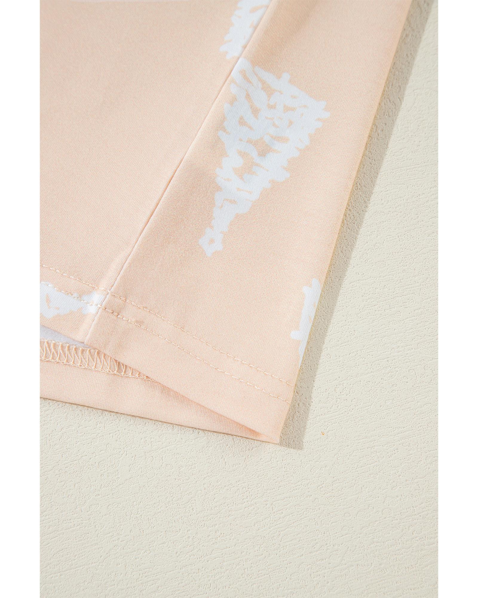 Apricot Christmas Tree Print Loose Fit Two Piece Pajama Set – L