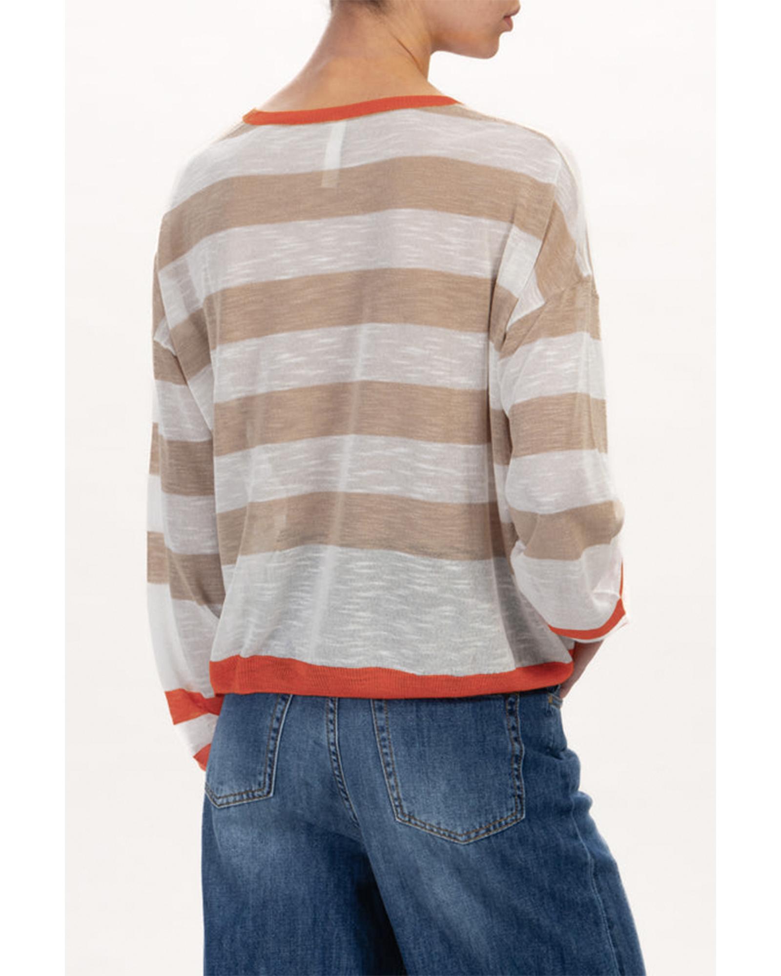 Apricot Colorblock Striped Round Neck Drop Shoulder Sweater – XL