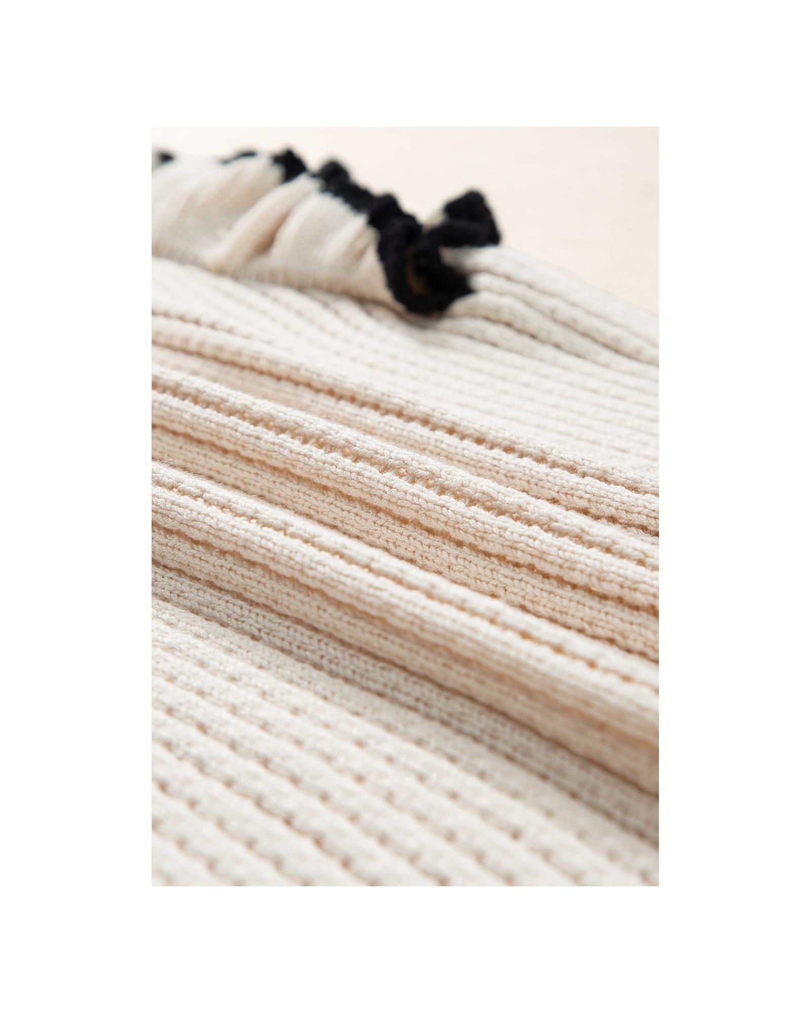 White Colorful Edge Quarter Zip Drop Shoulder Sweater - L