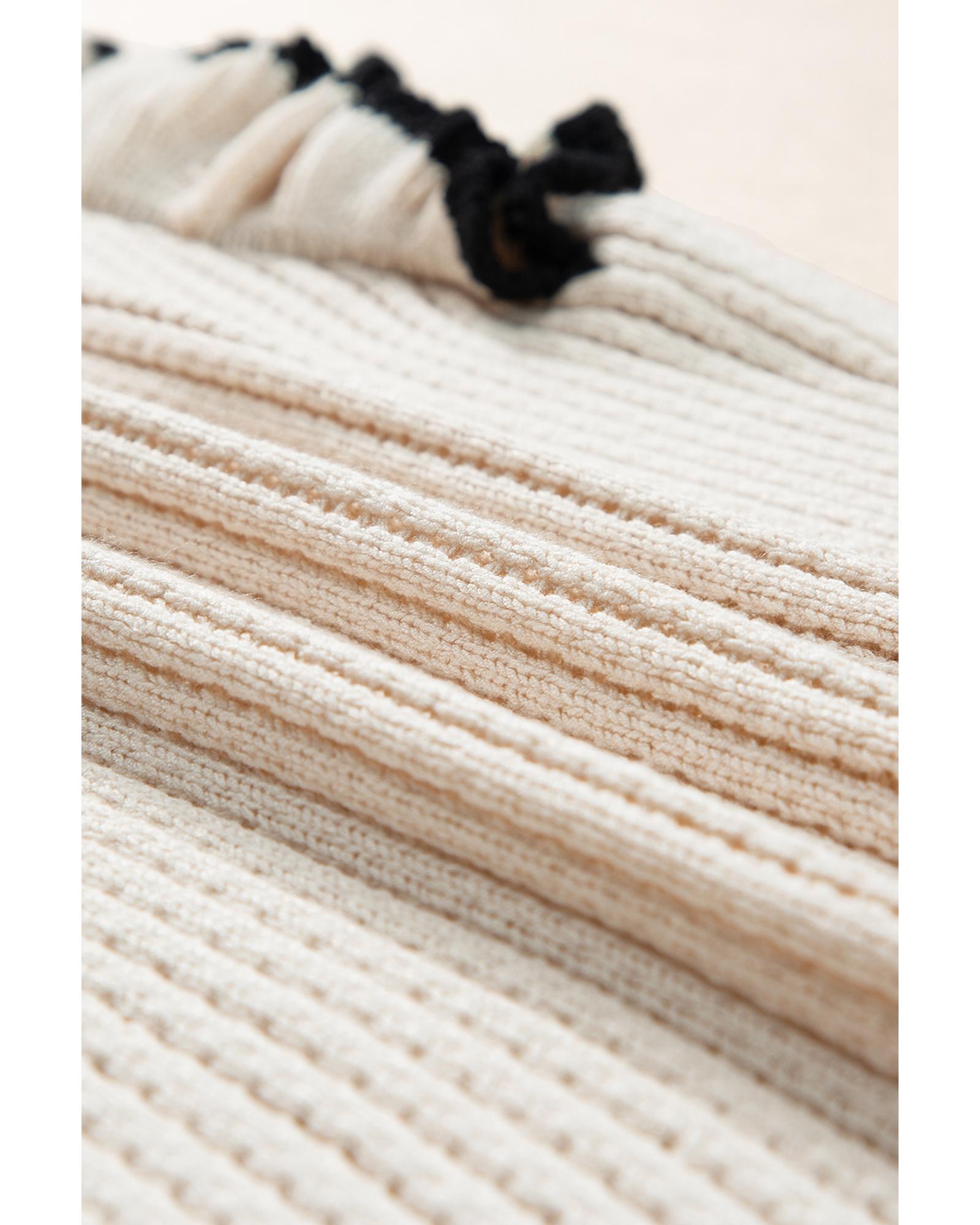 White Colorful Edge Quarter Zip Drop Shoulder Sweater - L