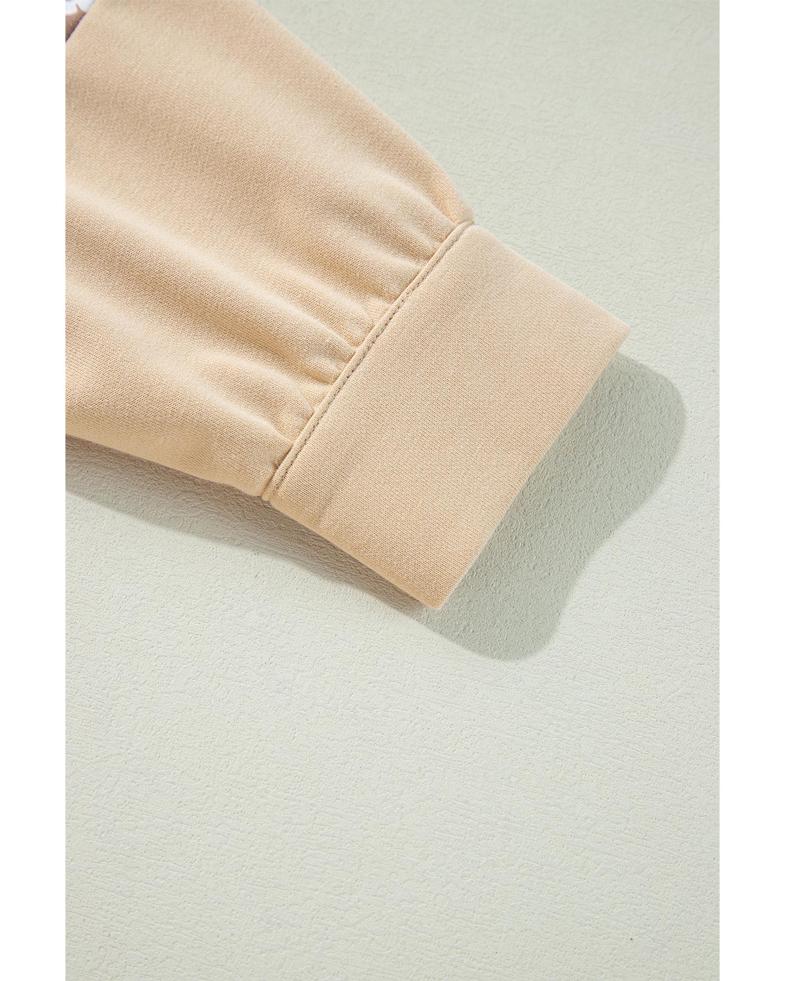 Light French Beige Solid Waffle Knit Patchwork Raglan Sleeve Sweatshirt - L