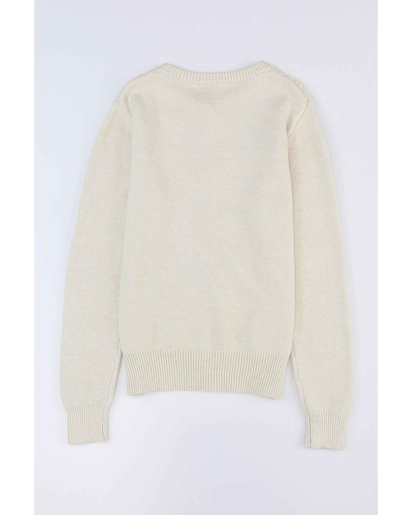 White Stripe Colorful Pattern Button Front Sweater Cardigan - M