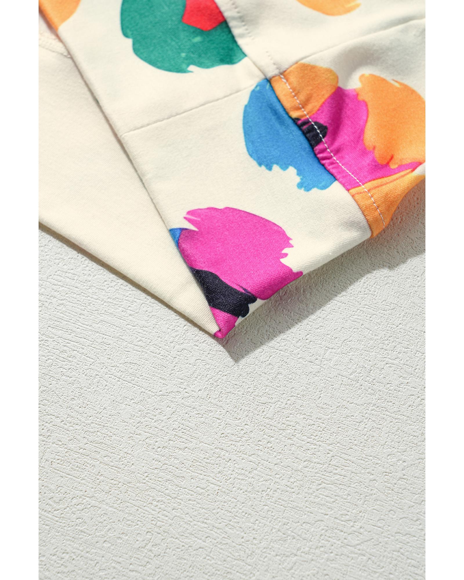 Apricot Leopard Splicing Exposed Seam Waffle Knit Top - M