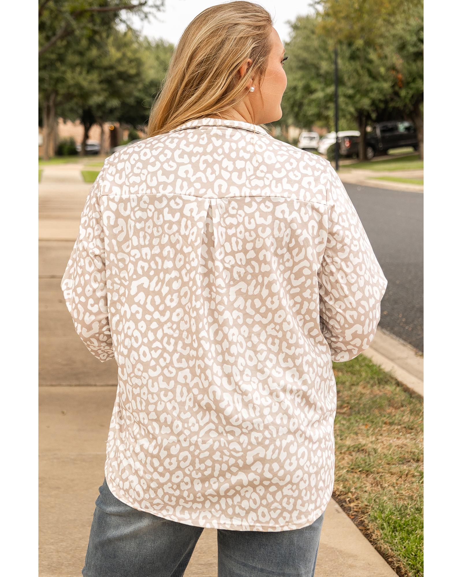 This stylish plus size top features a trendy leopard print design with a classic V-neck and chic tab sleeves. Made from high elasticity fabric, it offers a comfortable and flattering fit suitable for various body types. The top is designed to follow an international size standard, with recommendations to choose one size larger for the best fit.