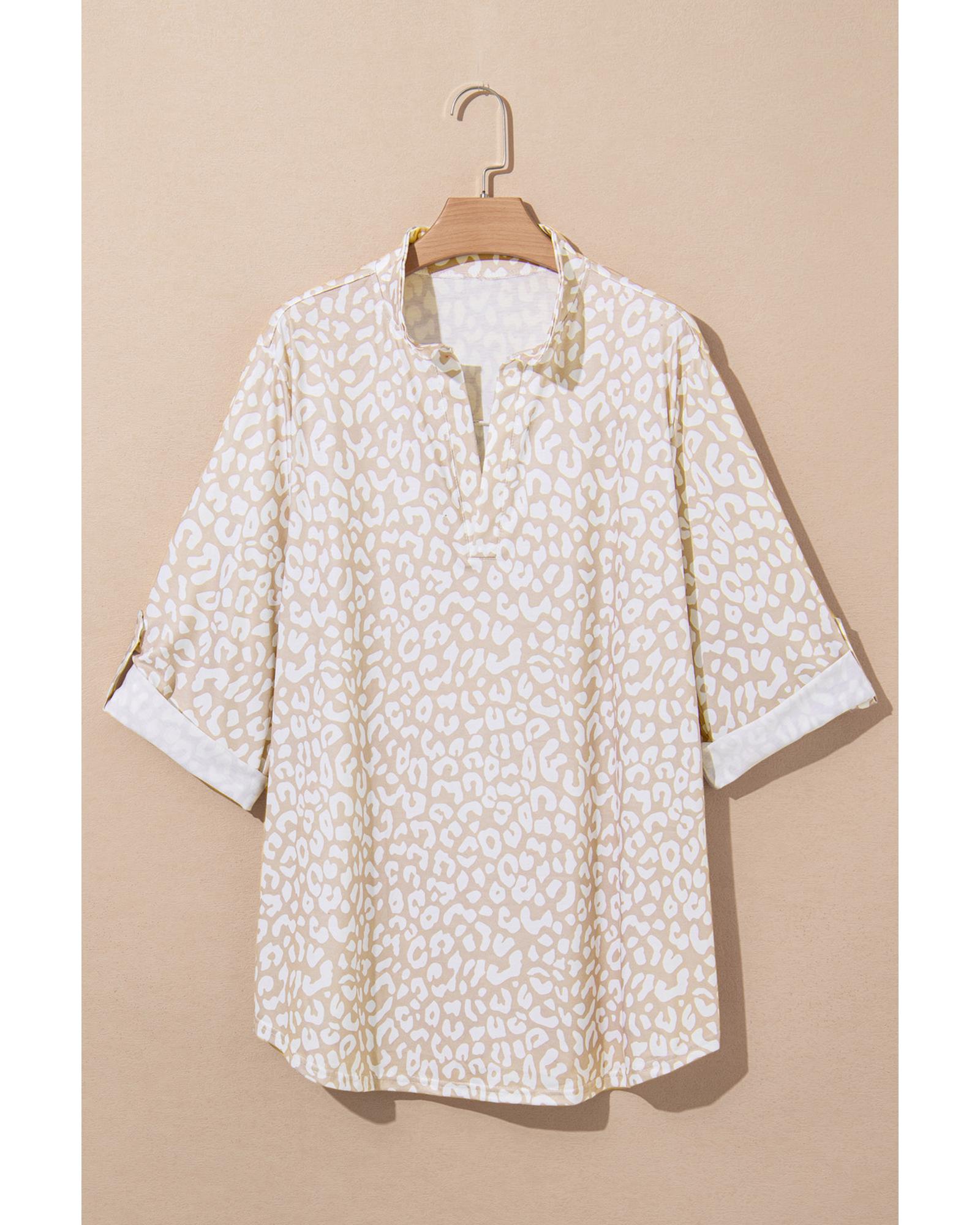 Apricot Leopard Tab Sleeve V Neck Plus Size Top – 3X
