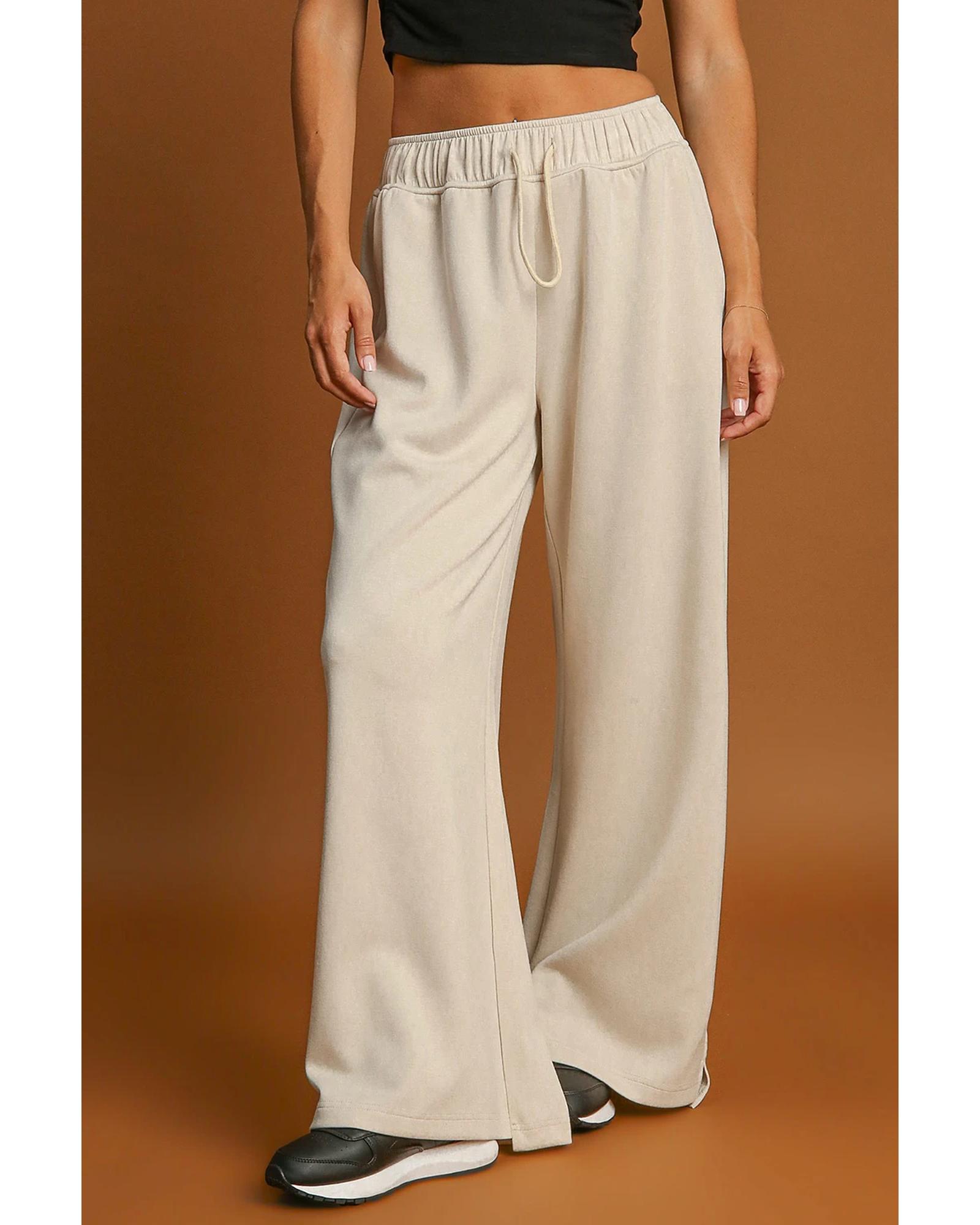 Apricot Loop Drawstring Casual Wide Leg Pants – L