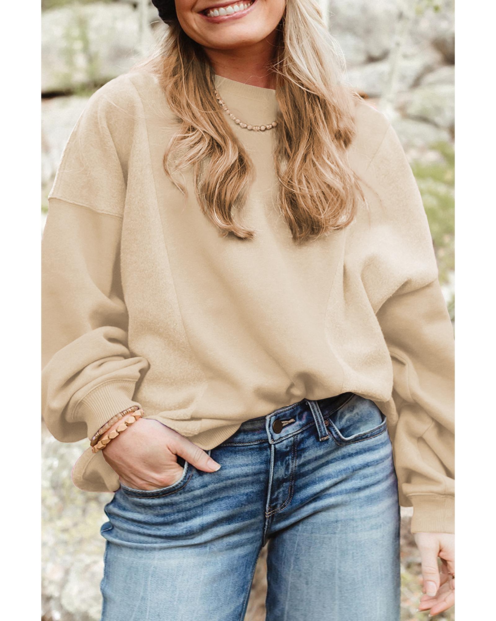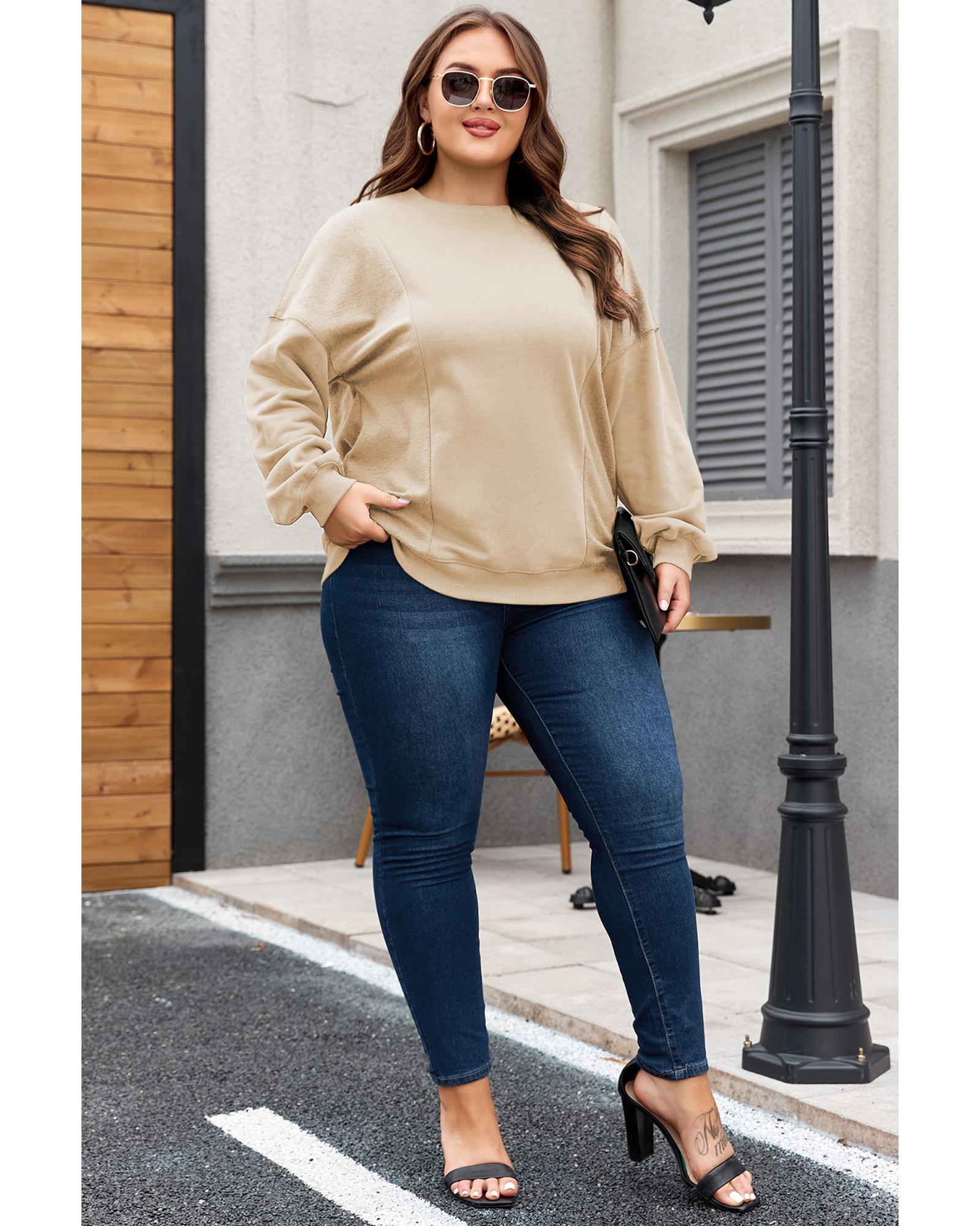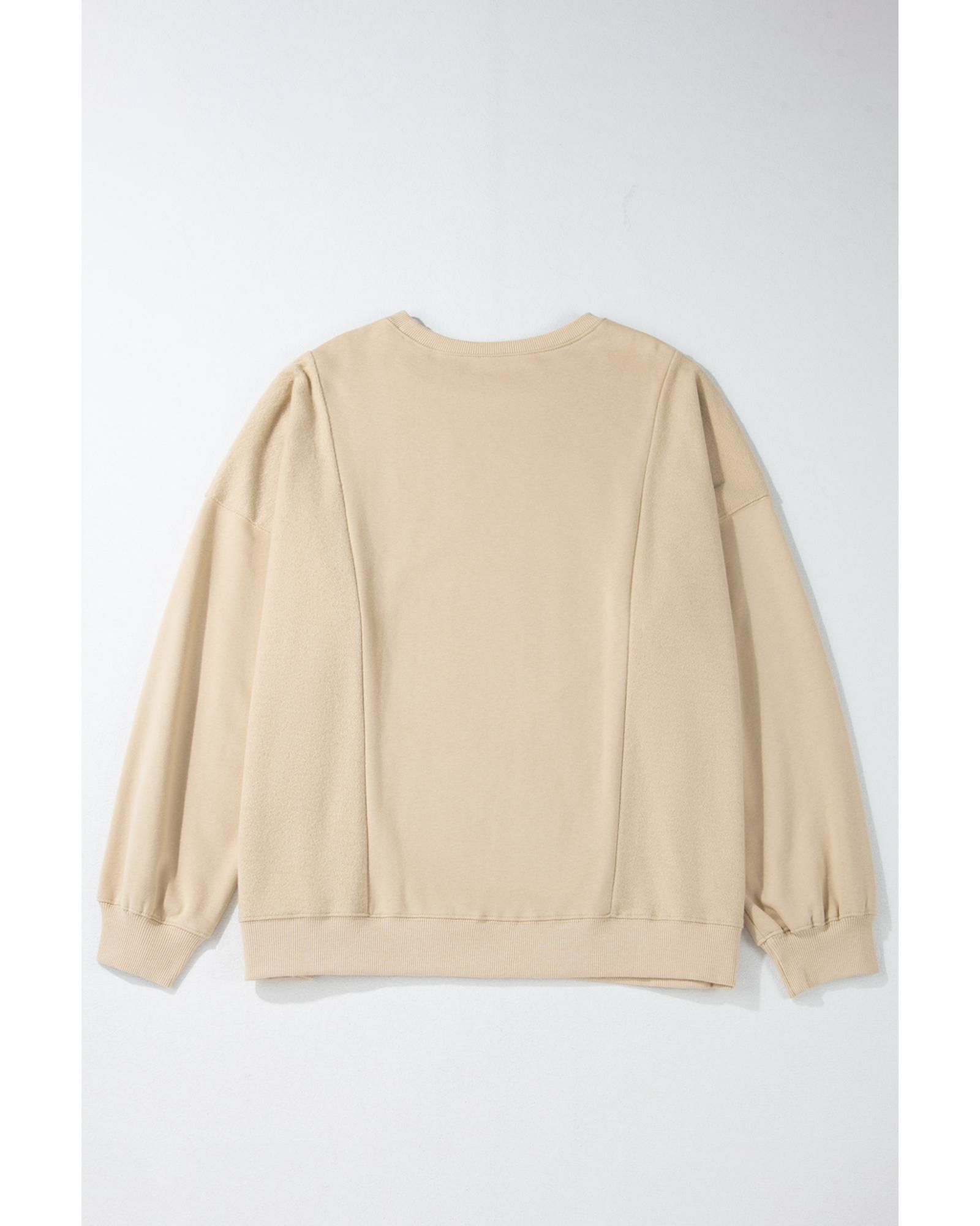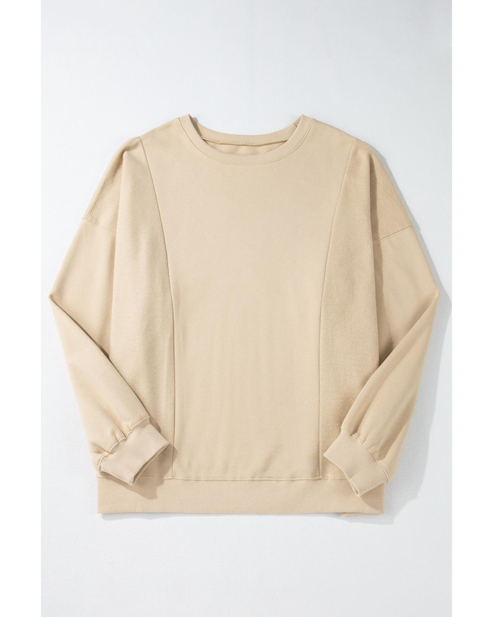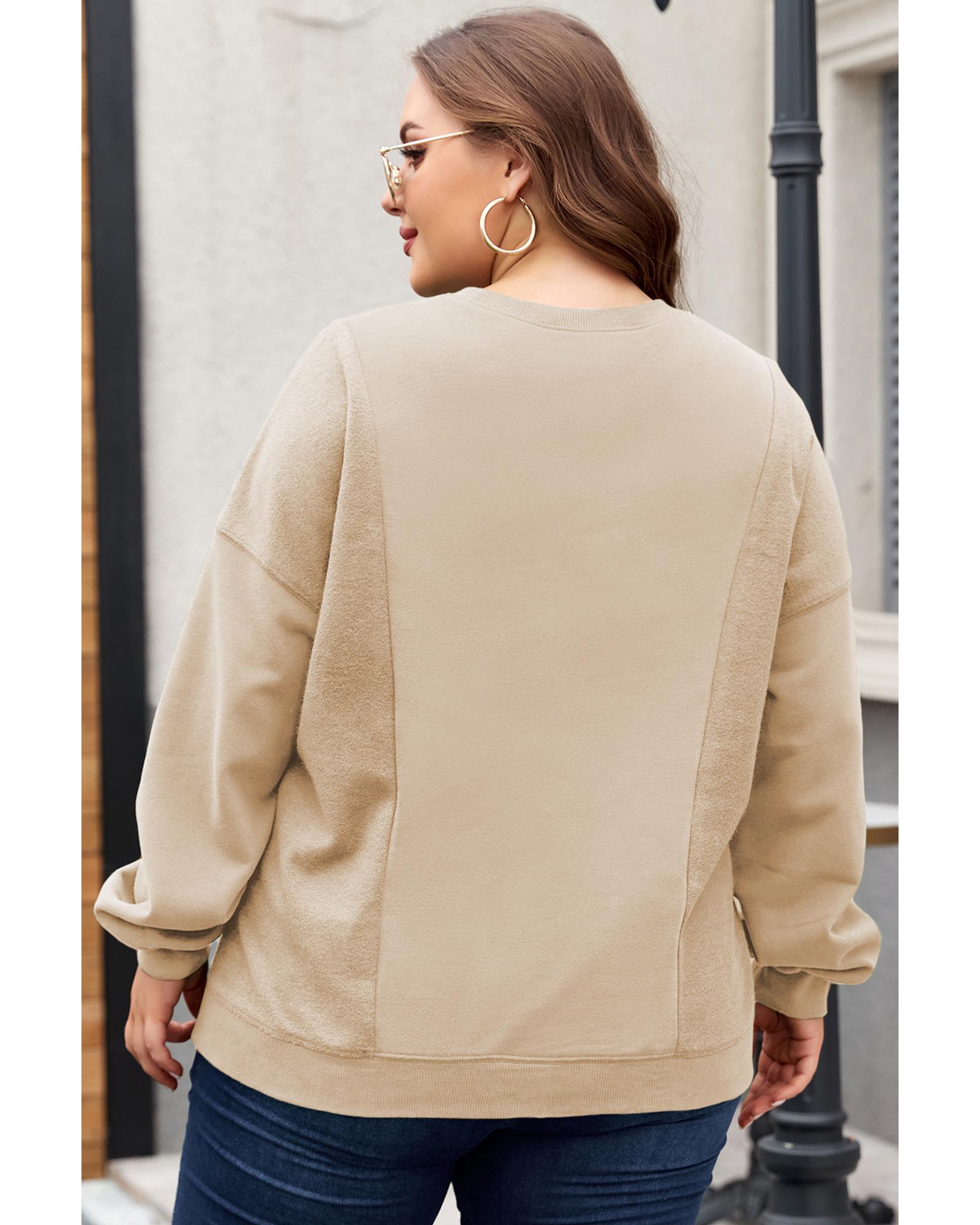 Apricot Loose Patchwork Crewneck Plus Size Sweatshirt – 3X