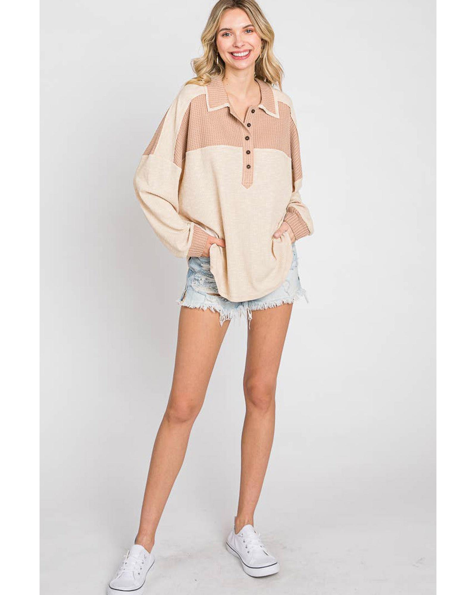 Apricot Oversized Knit Top With Waffle Contrast – S