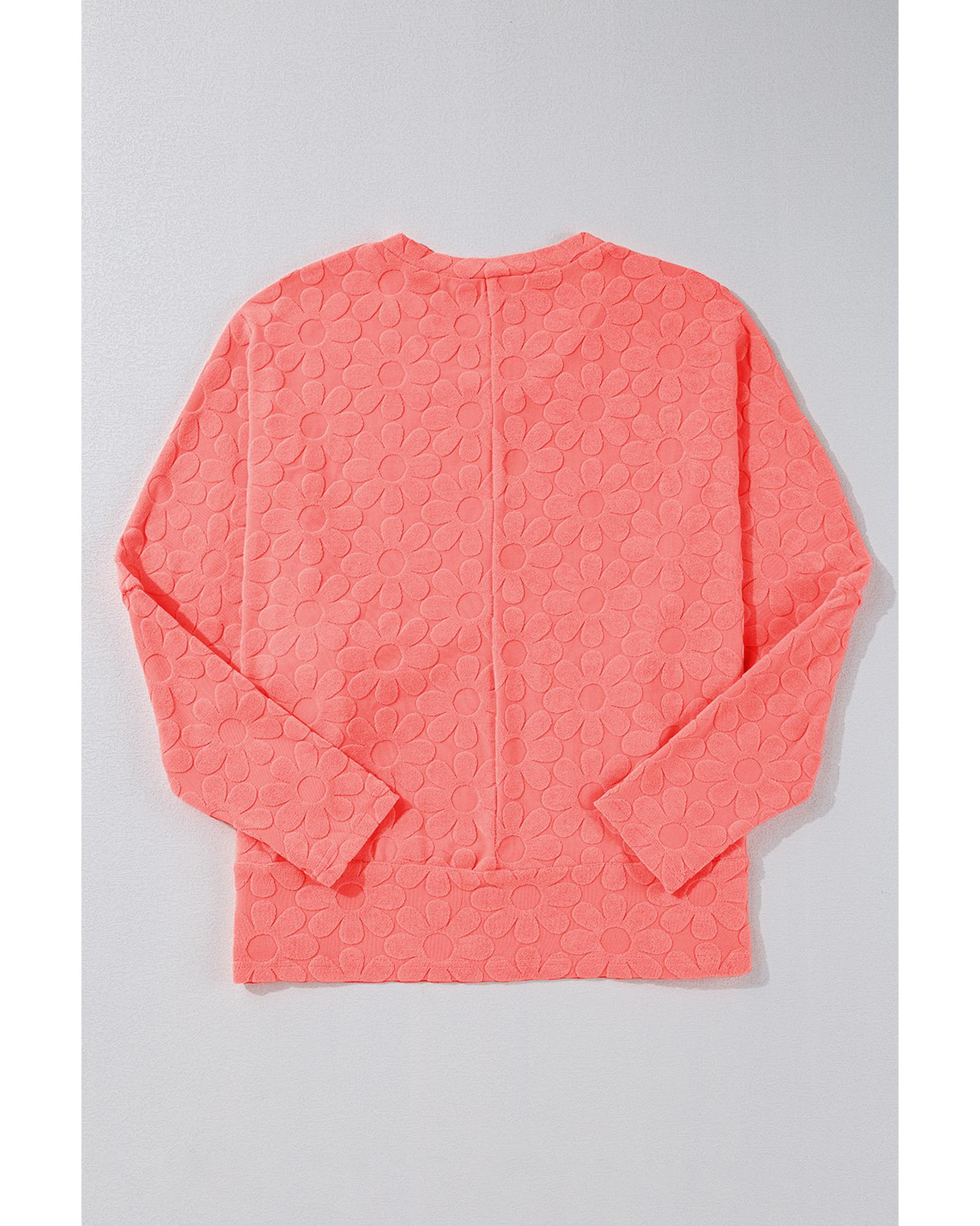 Apricot Pink Oversized Floral Jacquard V Neck Long Sleeve Top – S