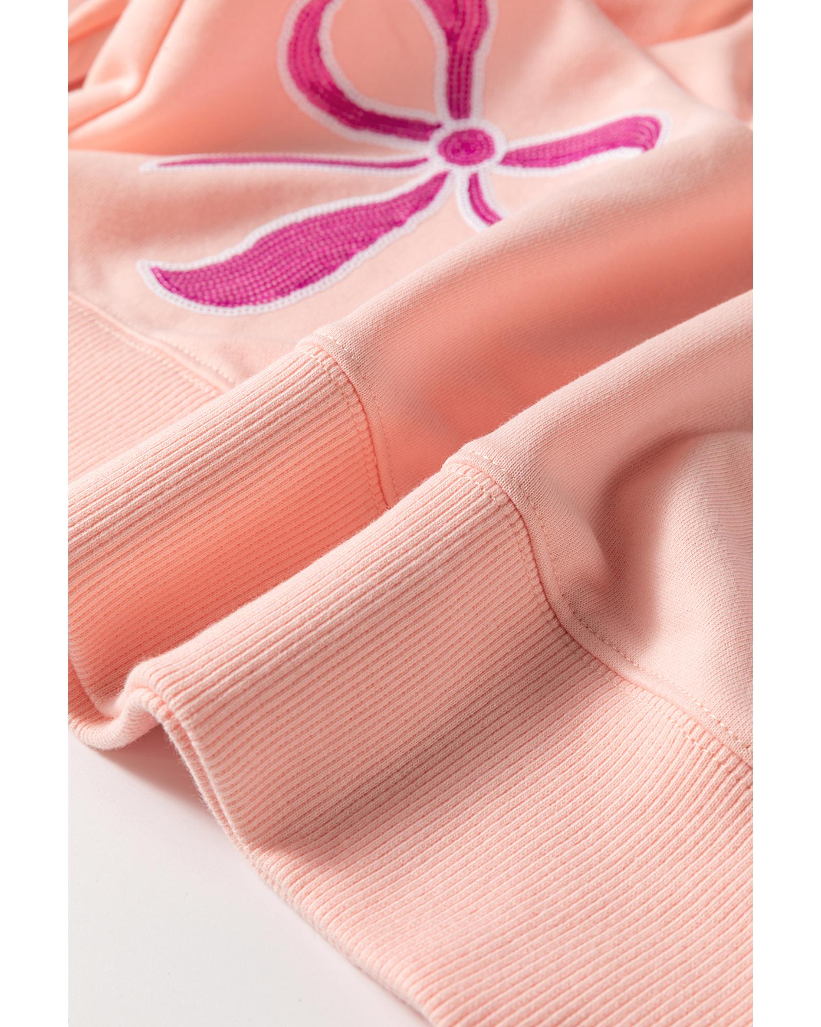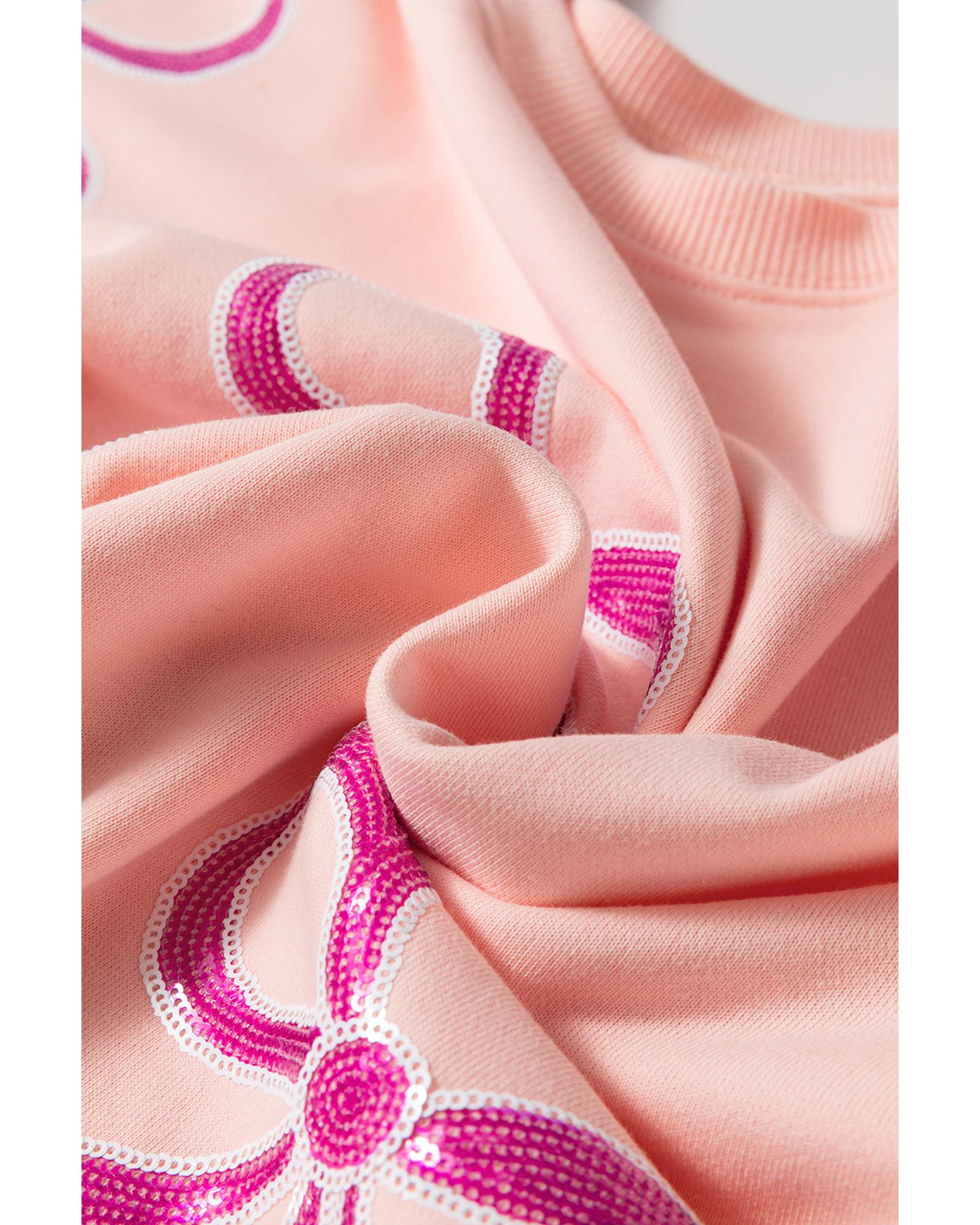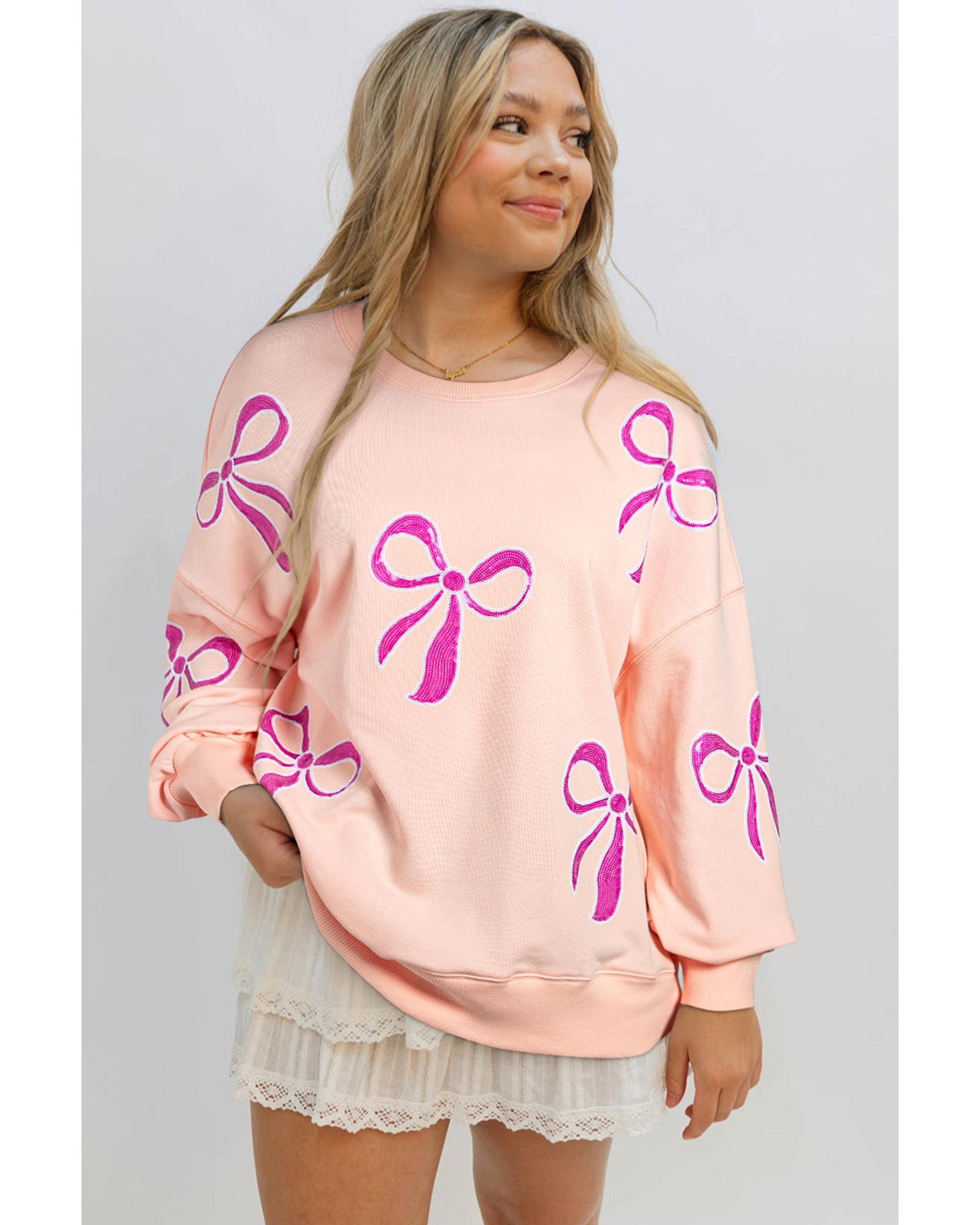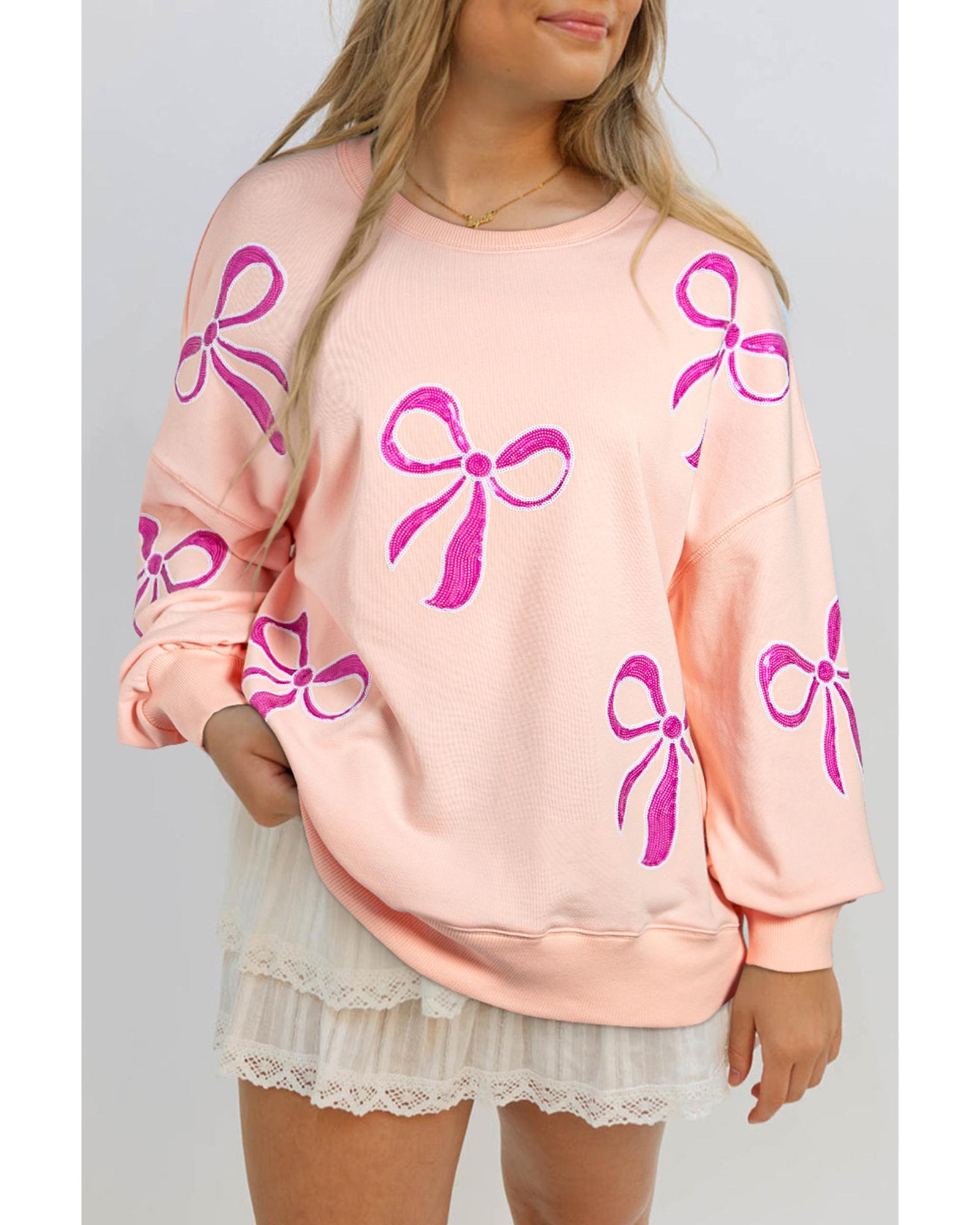 Apricot Pink Sequined Bowknot Drop Shoulder Oversized Sweatshirt – XL