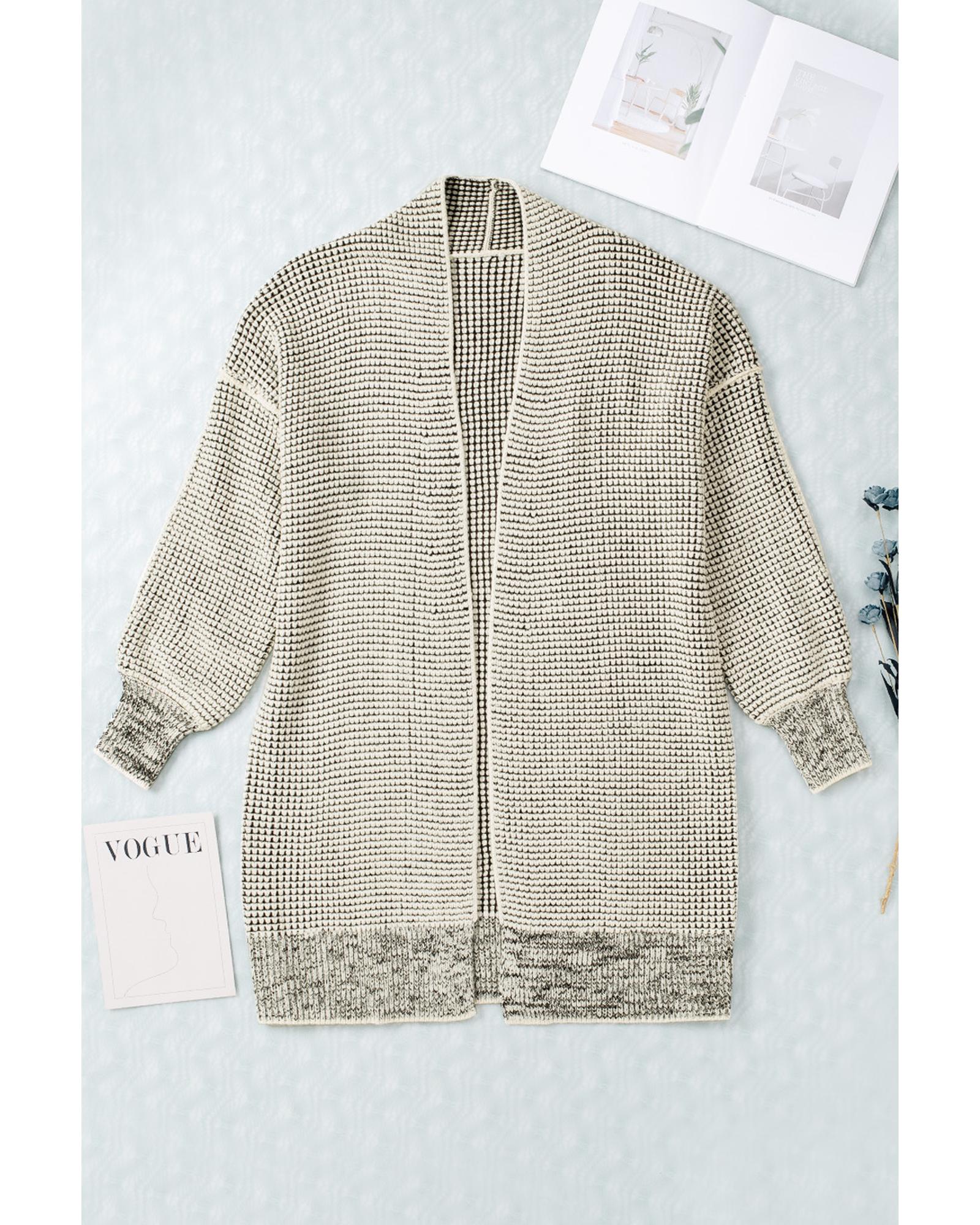Apricot Plaid Knitted Long Open Front Cardigan – S