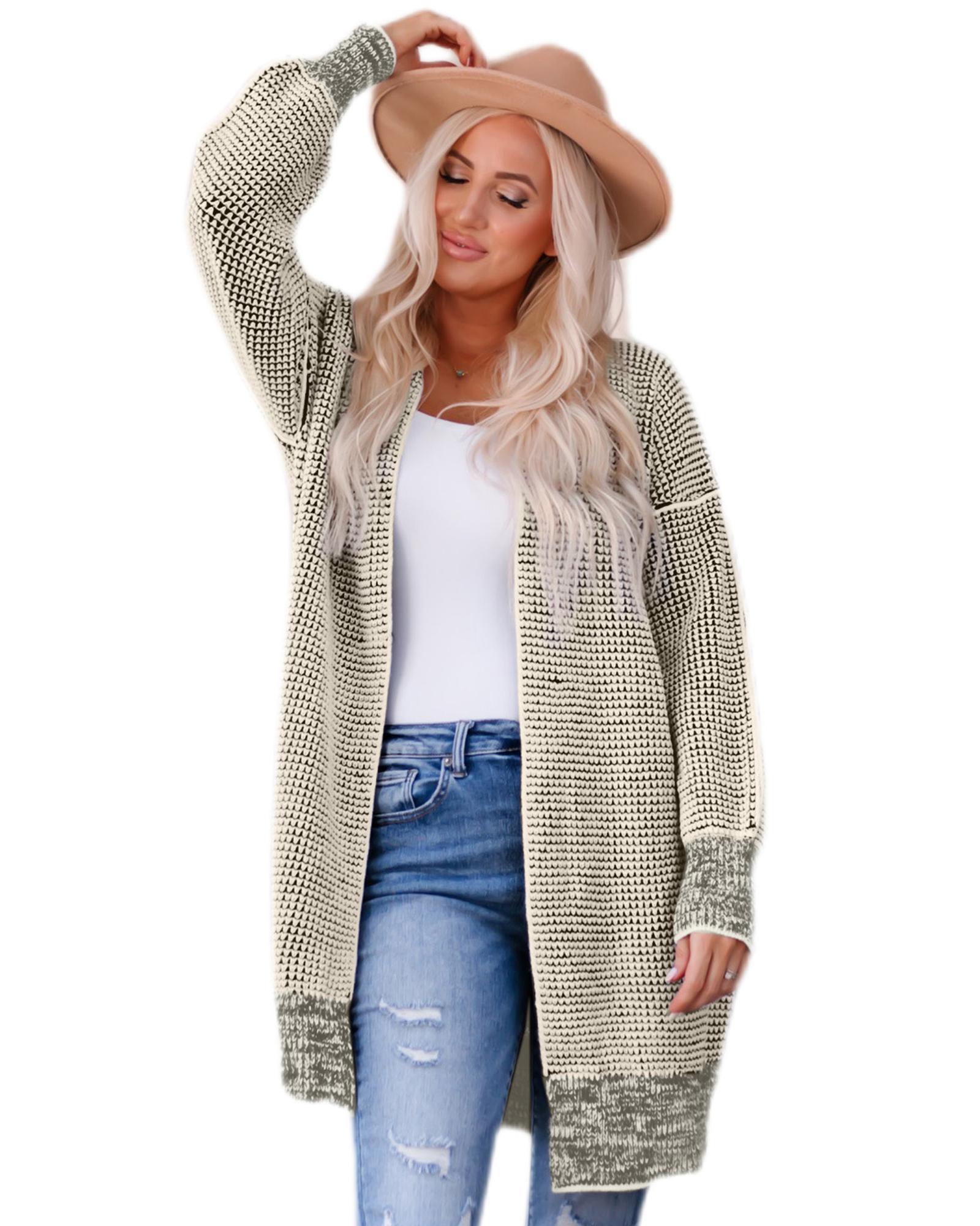 This long open front cardigan features a classic plaid pattern and a relaxed fit, making it a versatile addition to any wardrobe. Its soft knit fabric provides comfort for everyday wear and various occasions.