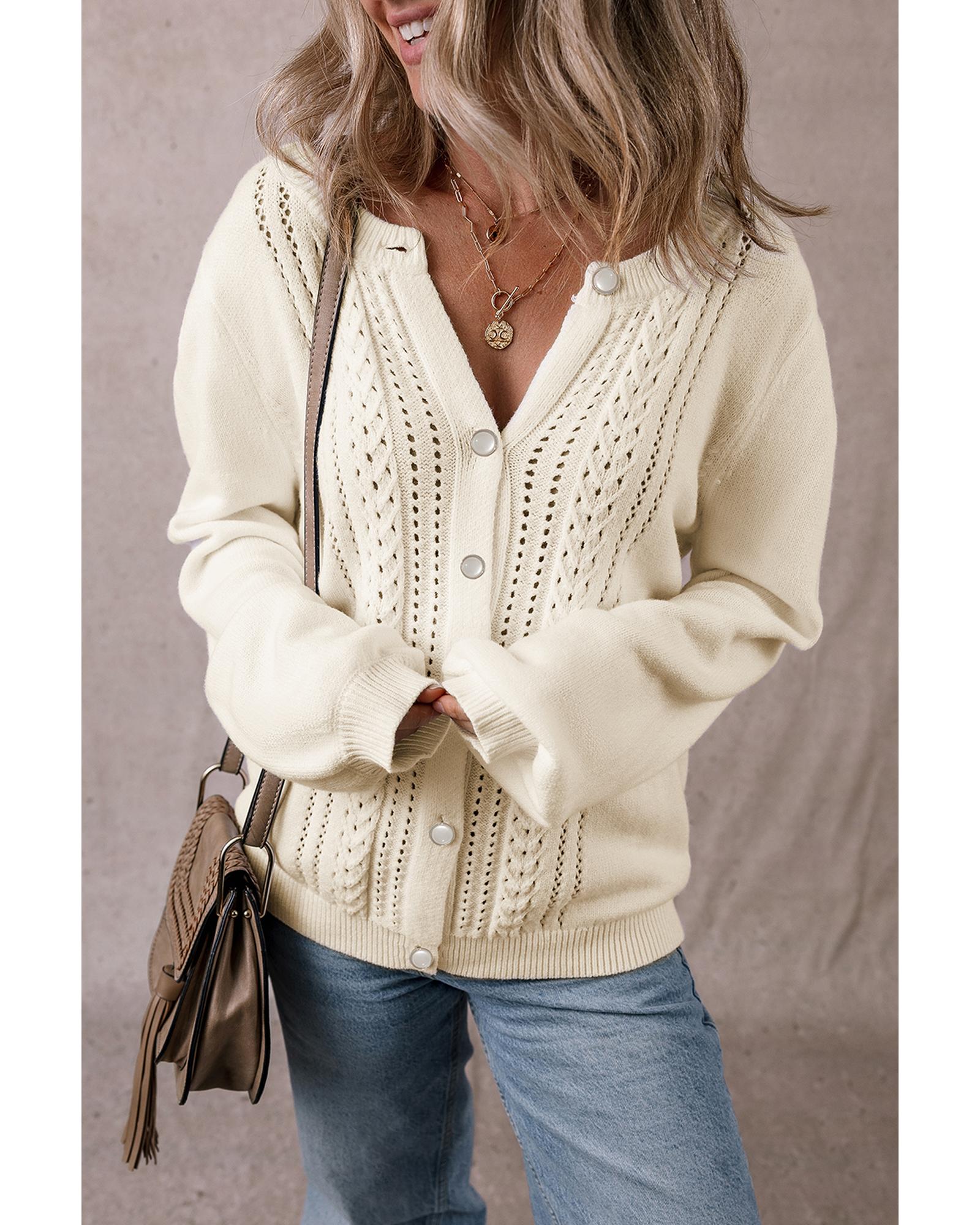 Apricot Pleated Sleeve Hollow Detail Button Sweater Cardigan – XL