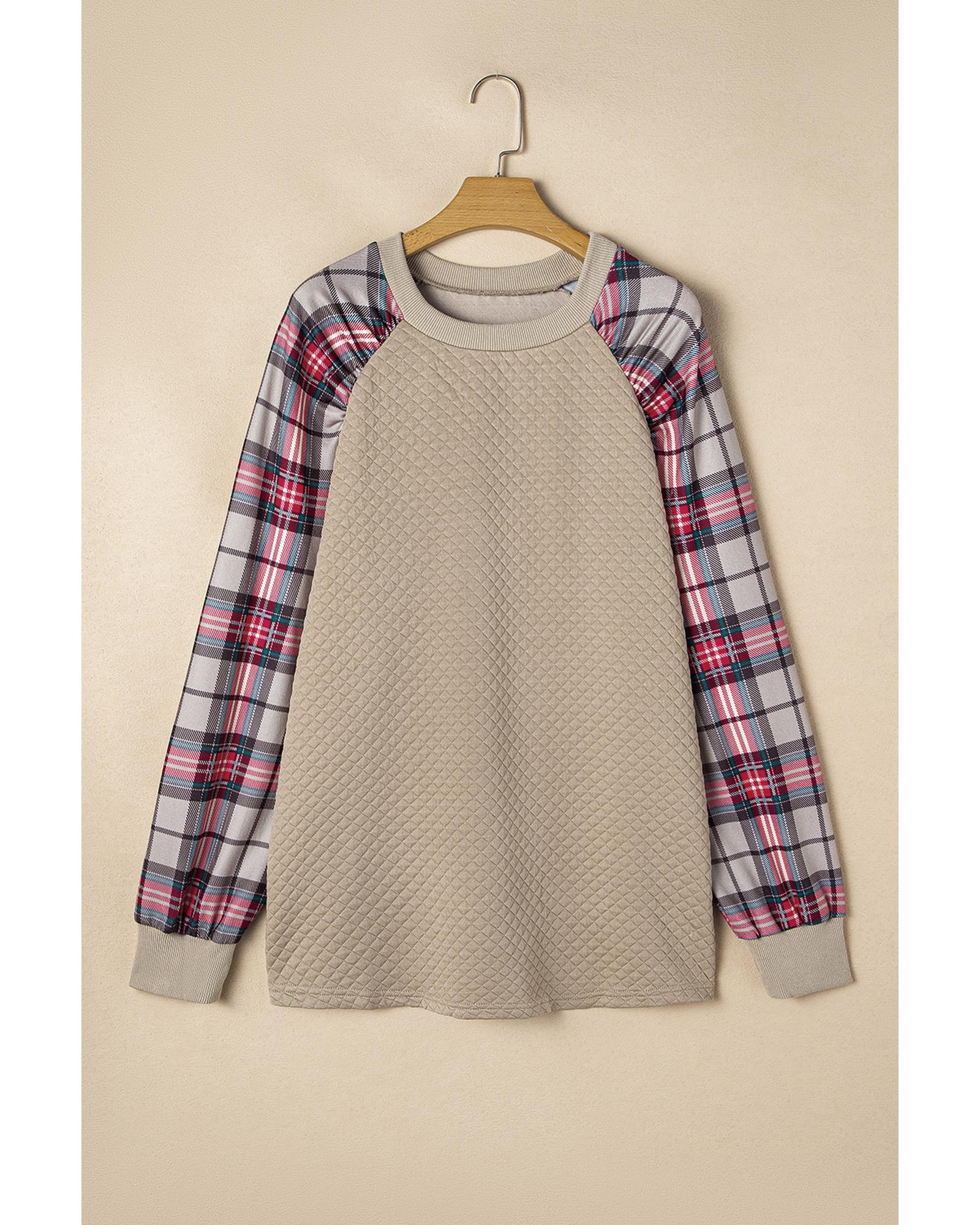 Apricot Plus Size Plaid Raglan Sleeve Crew Neck Sweatshirt – 2X