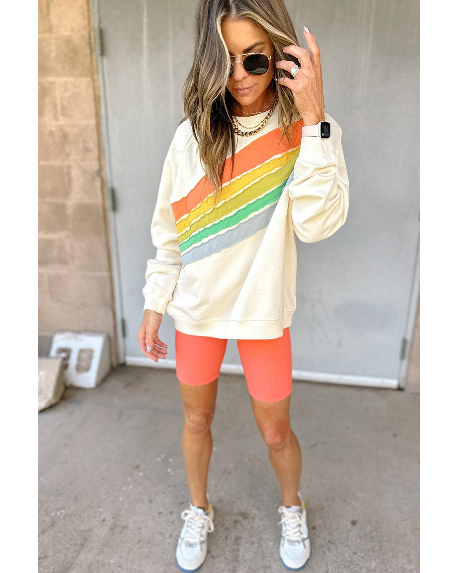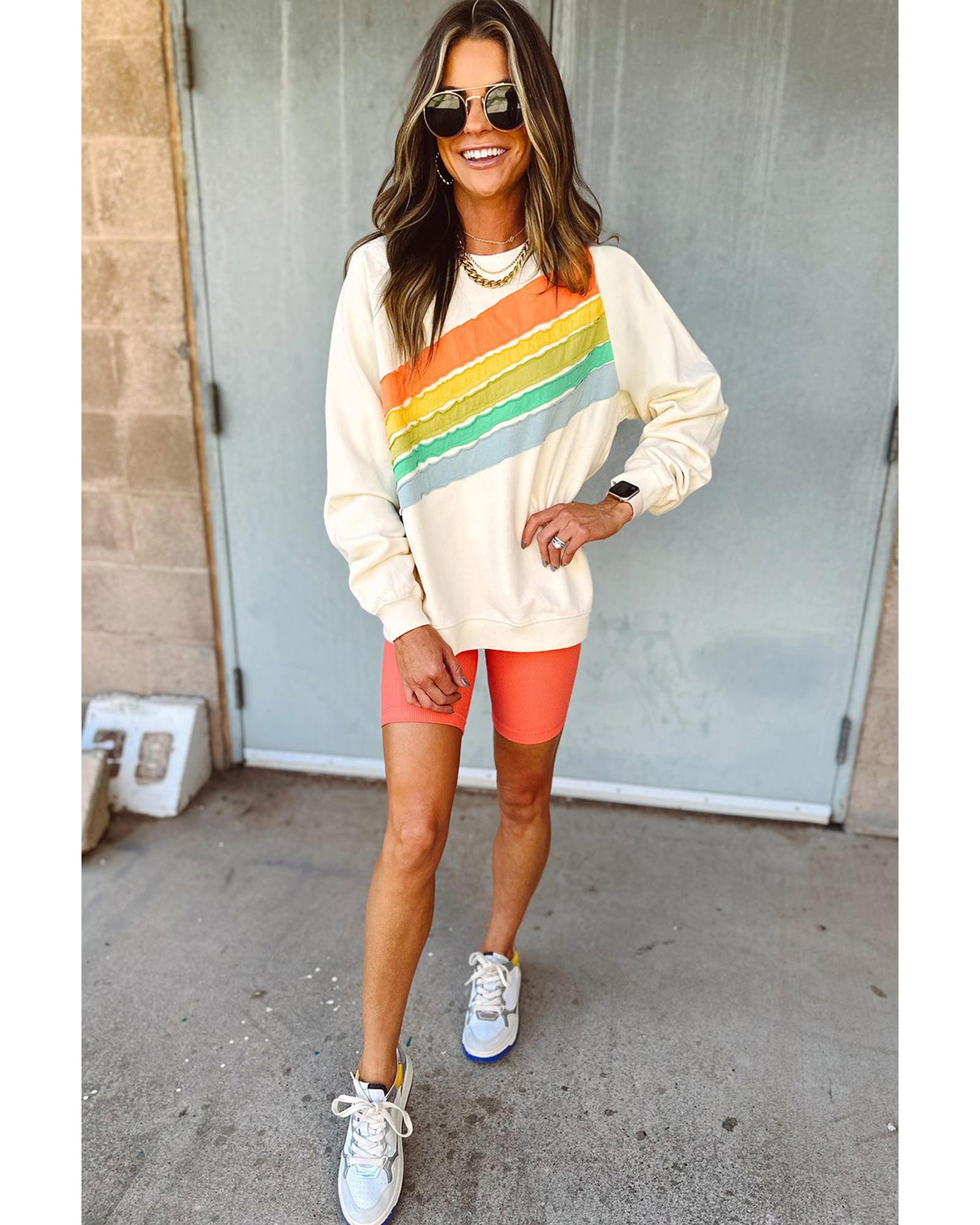 Apricot Rainbow Colorblock Striped Pullover Sweatshirt – XL