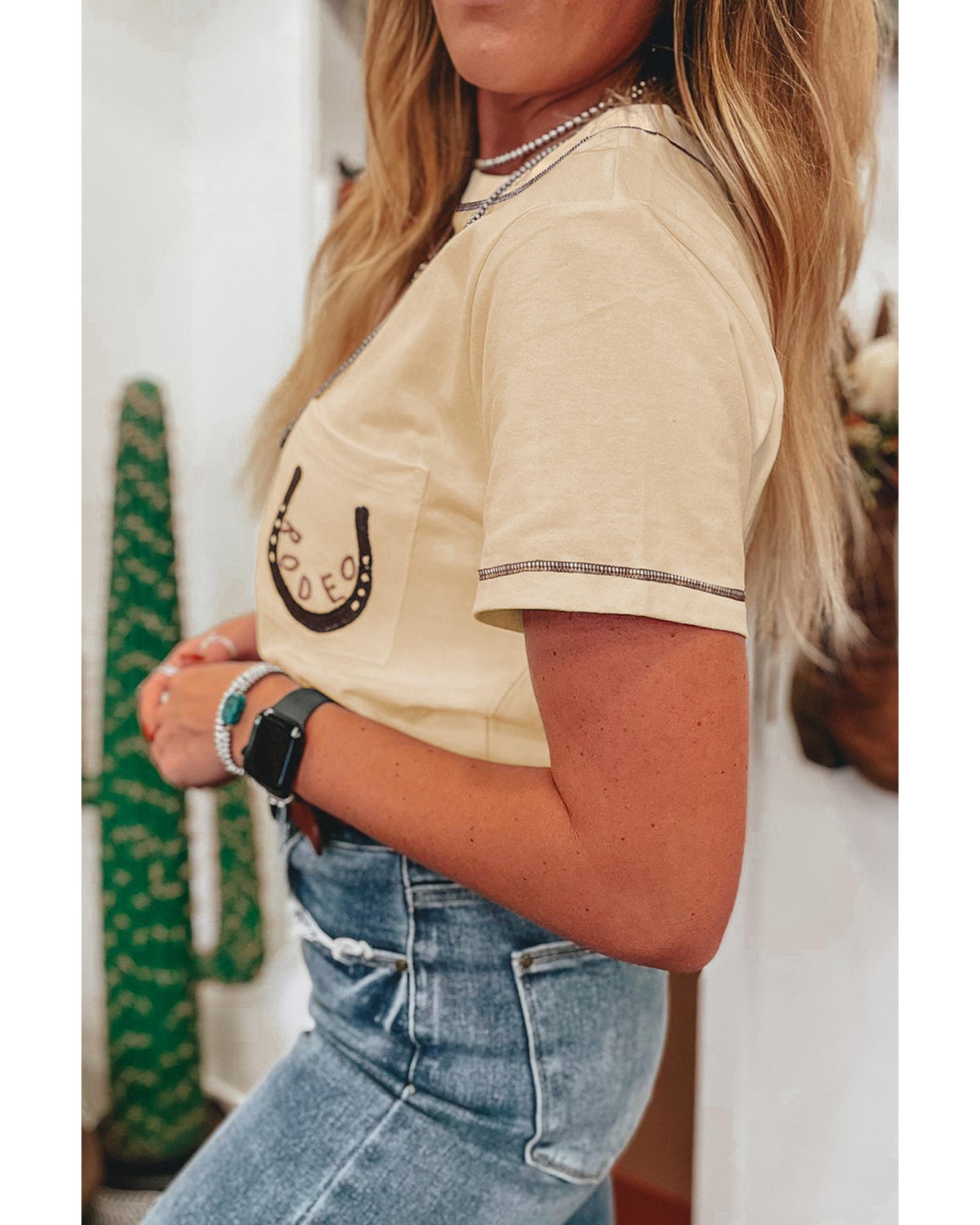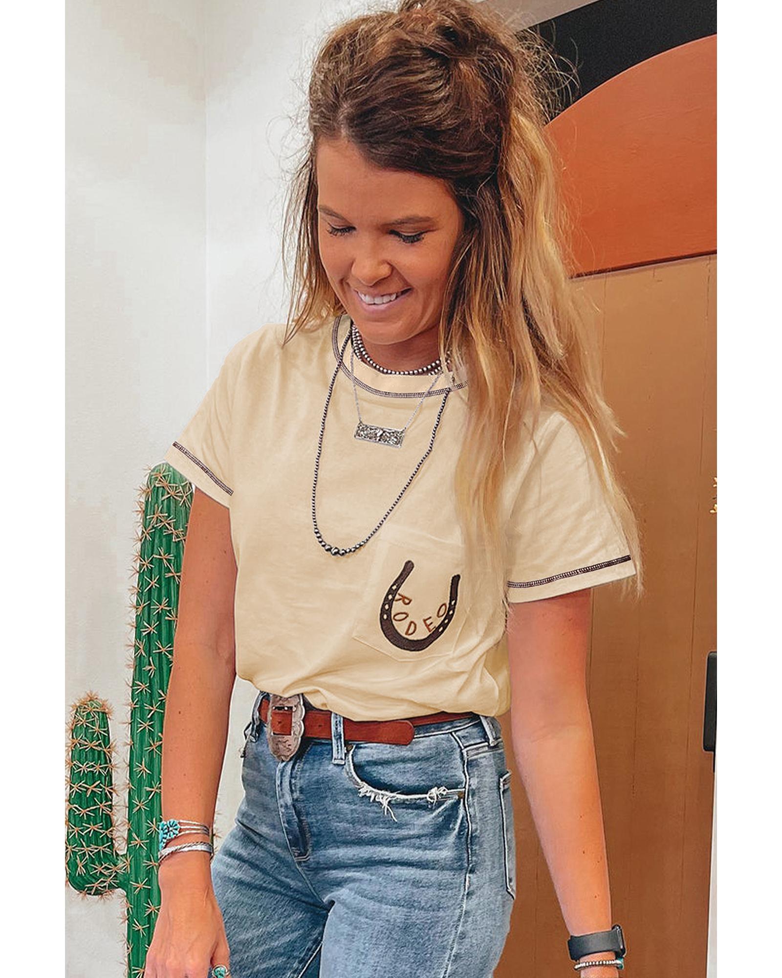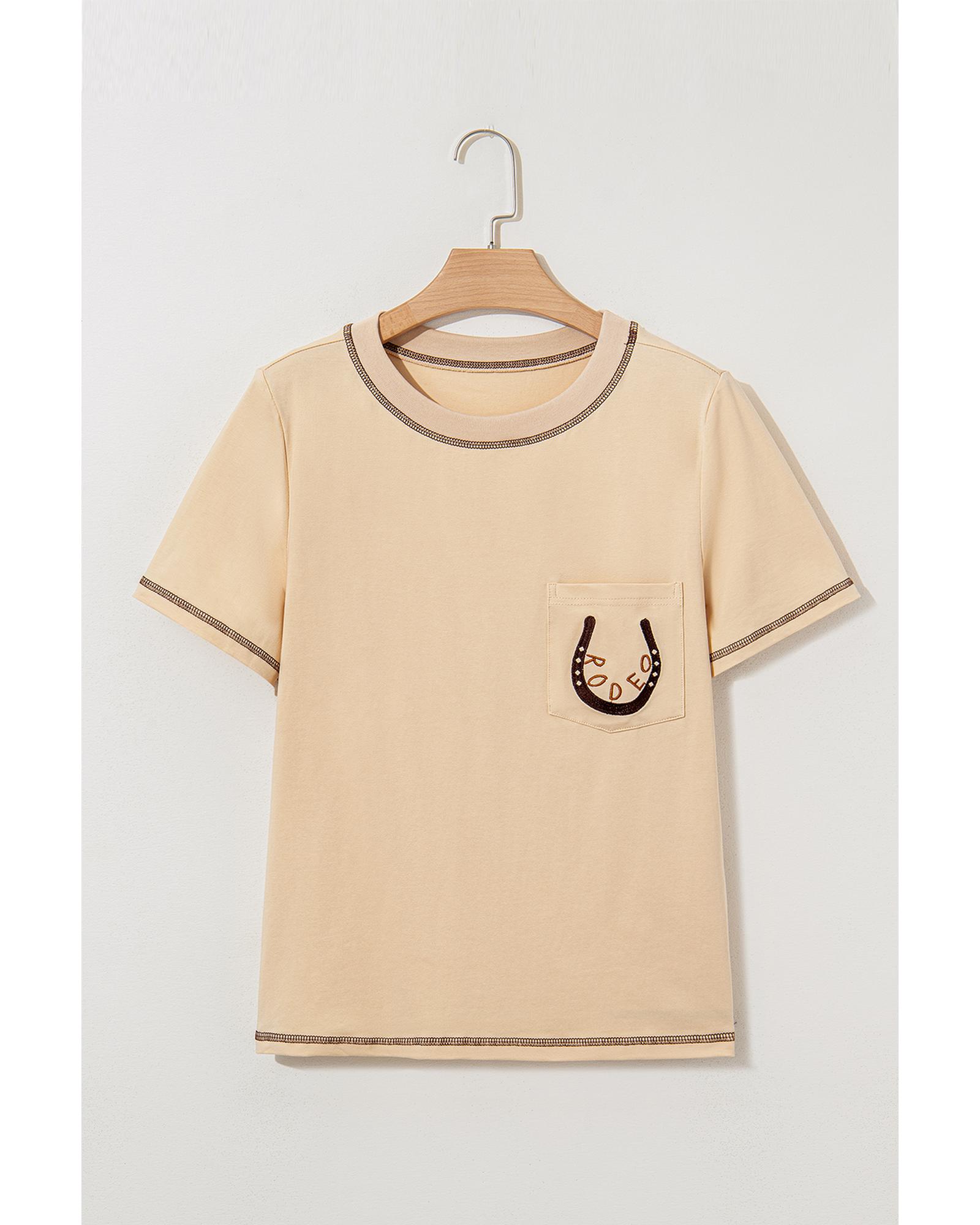 Apricot RODEO Horseshoe Embroidered Patch Pocket T Shirt – XL