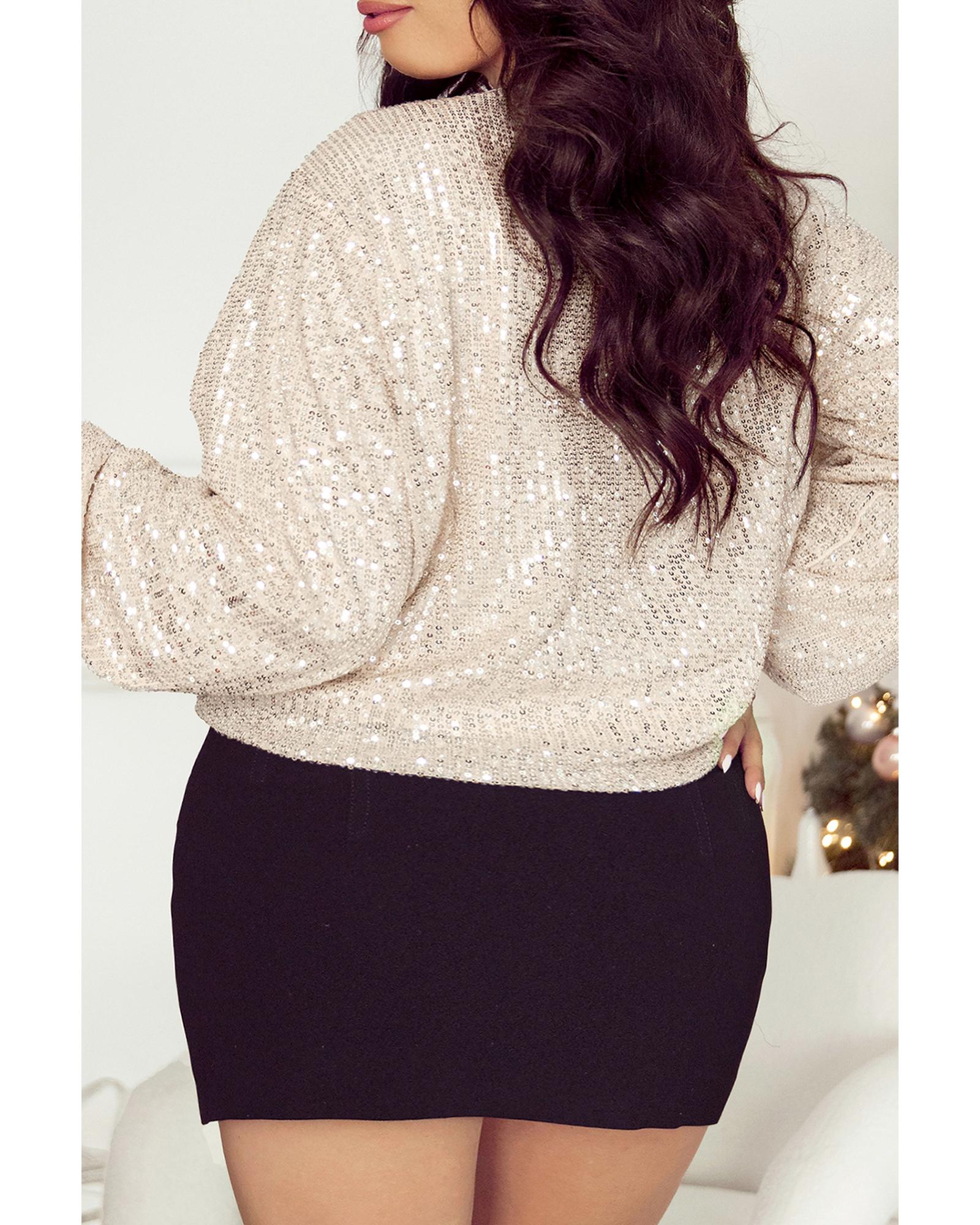 - 1 x Sequin Zip-up Round Neck Long Sleeve Jacket