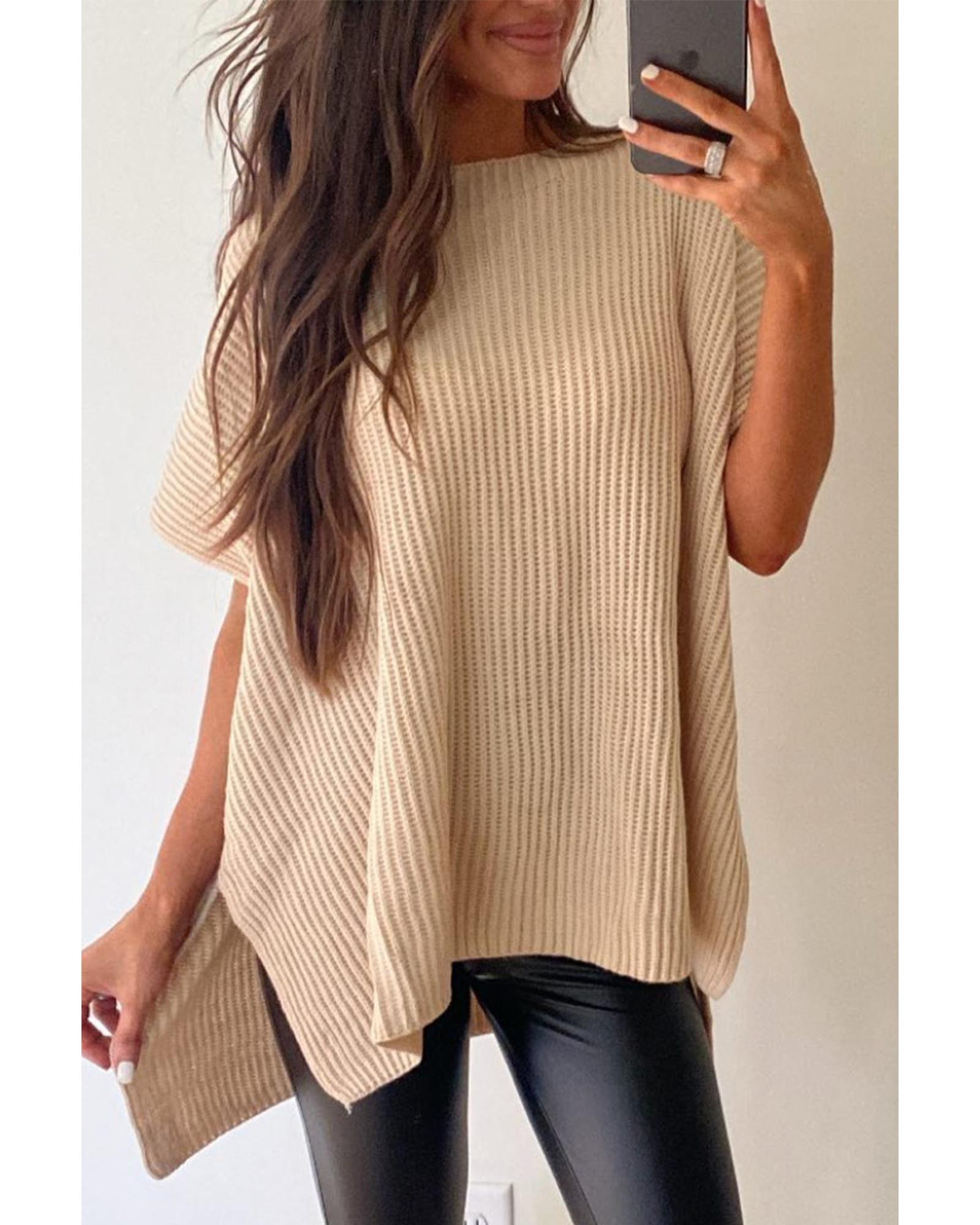 - Effortlessly chic oversized sweater with wide short sleeves and tunic length
