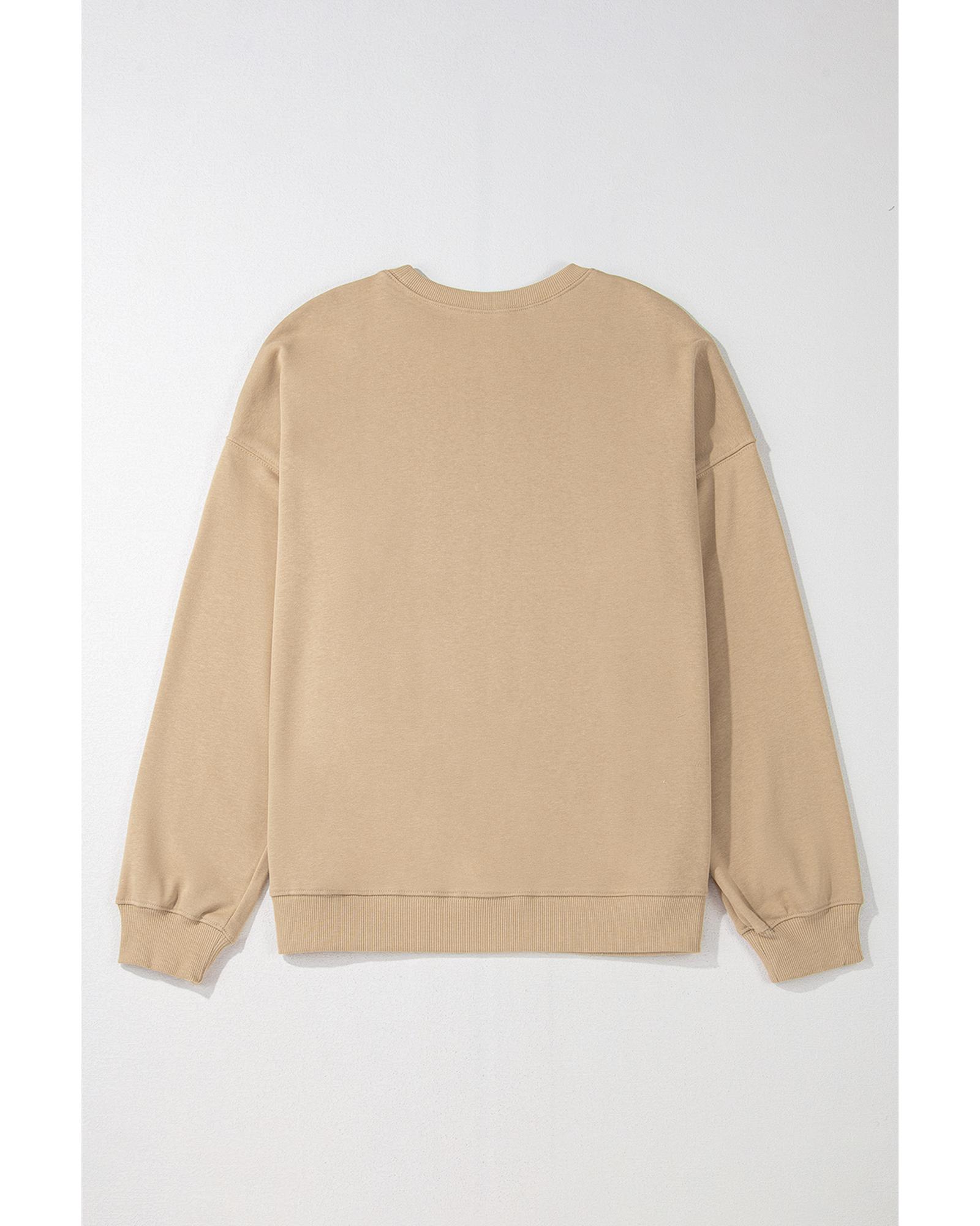 Apricot Solid Crew Neck Drop Shoulder Plus Size Sweatshirt – 2X