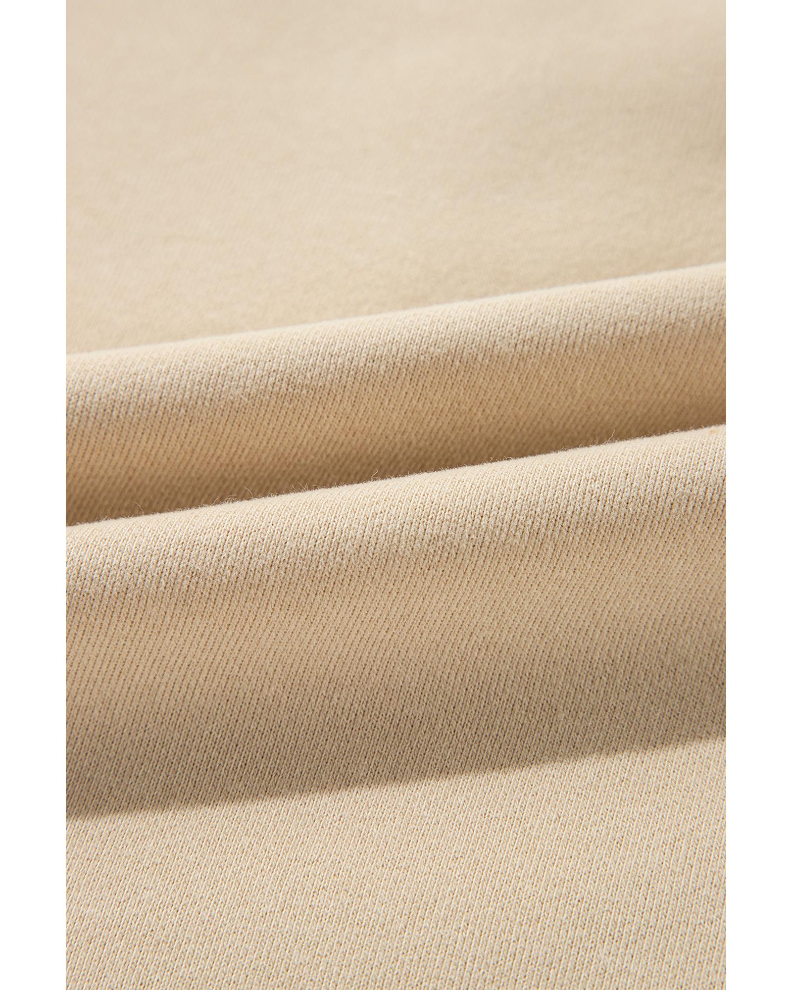 Light French Beige Solid Waffle Knit Patchwork Raglan Sleeve Sweatshirt - L