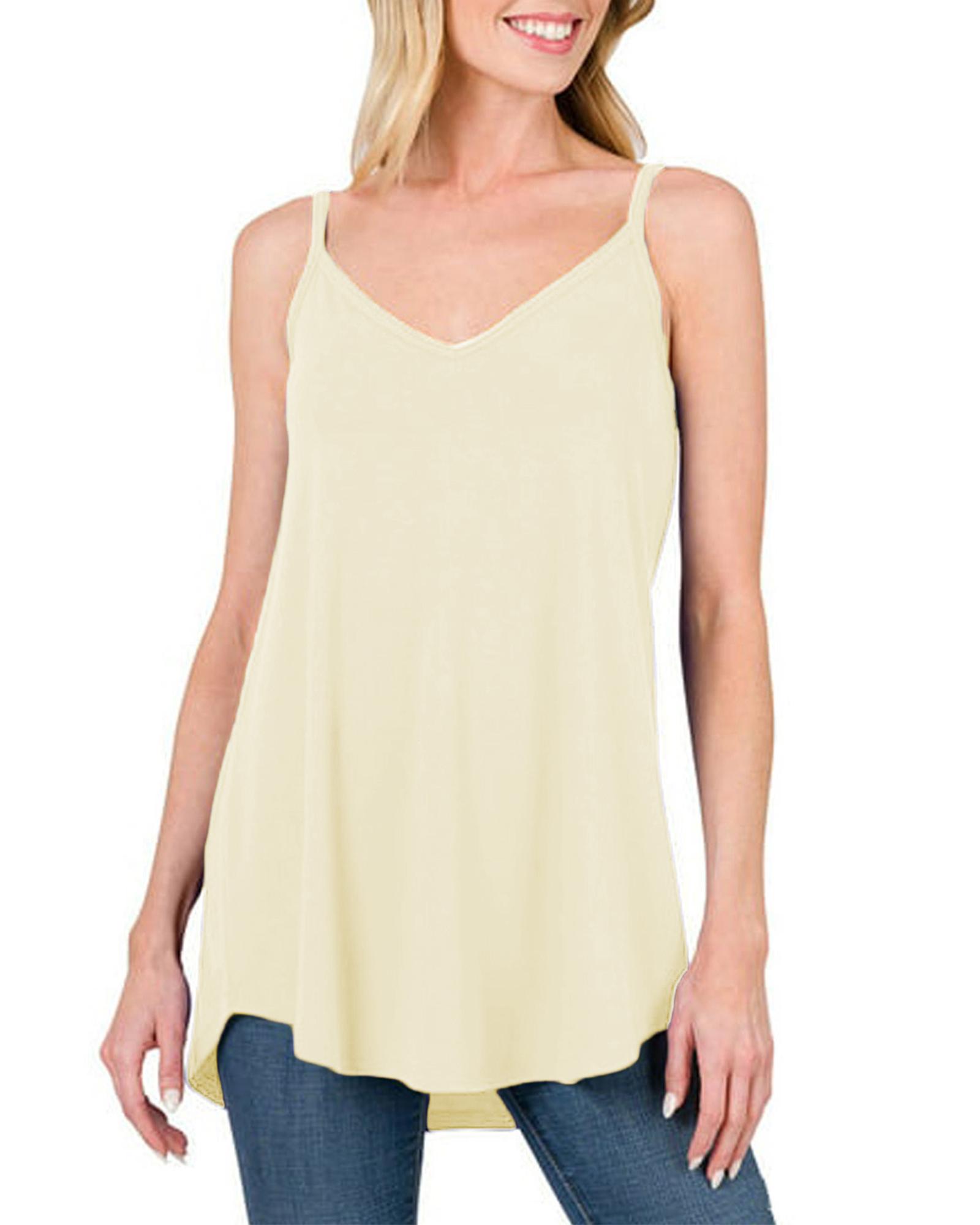 Package Content: 1 x Apricot Spaghetti Strap V-Neck Flowy Tunic Tank Top