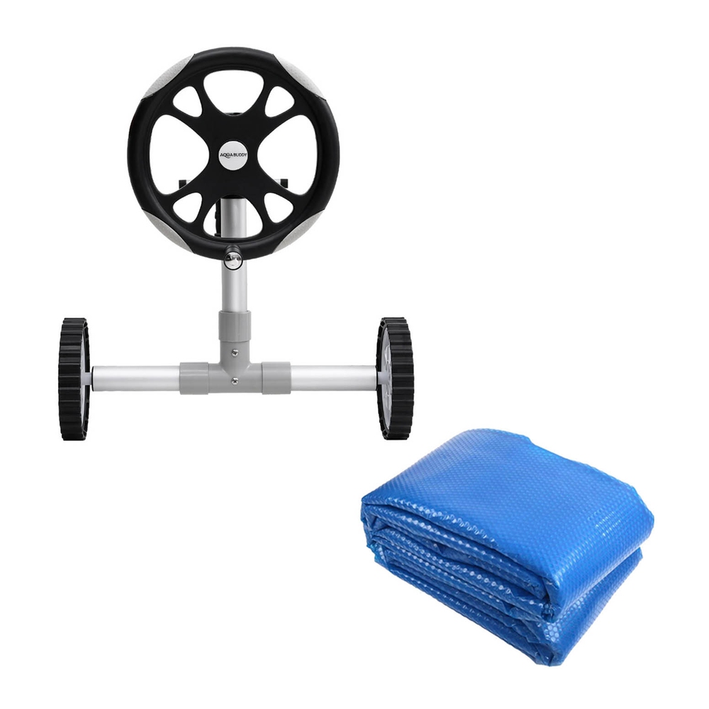 This set includes an aluminium pool roller and a solar pool cover designed to keep your pool clean and warm by utilizing natural sunlight. The roller features adjustable length and sturdy construction, making it suitable for pools within a specific size range. The pool cover is made from durable, UV and chemical-resistant polyethylene material, with a design that enhances heat retention and reduces water evaporation.
