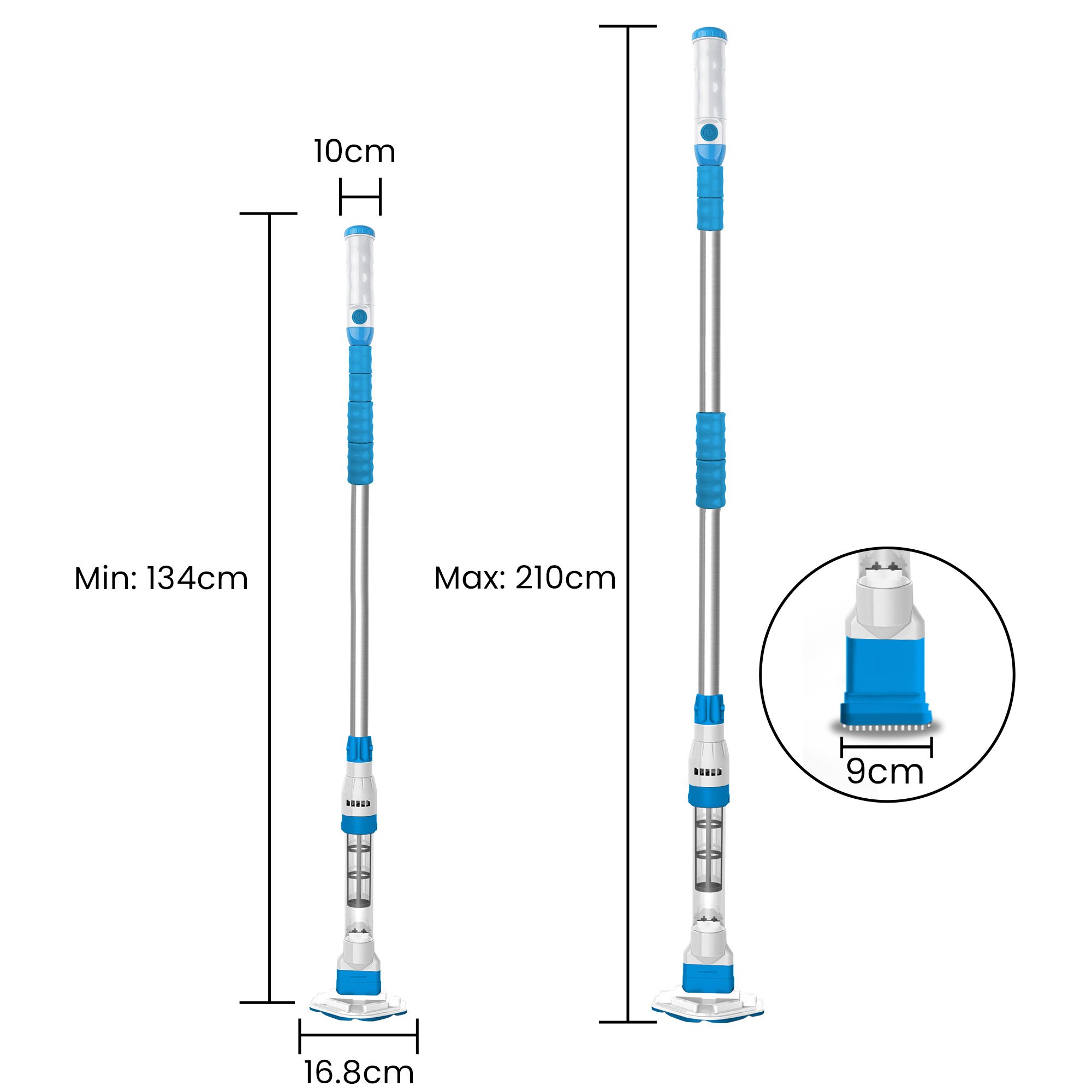 This portable rechargeable spa and pool vacuum cleaner offers a convenient and efficient solution for maintaining your pool. Its cordless design and lightweight build make it easy to maneuver and operate, allowing for quick removal of leaves, small debris, and dust from various pool surfaces. The vacuum is suitable for different water depths and features adjustable components for versatile use.