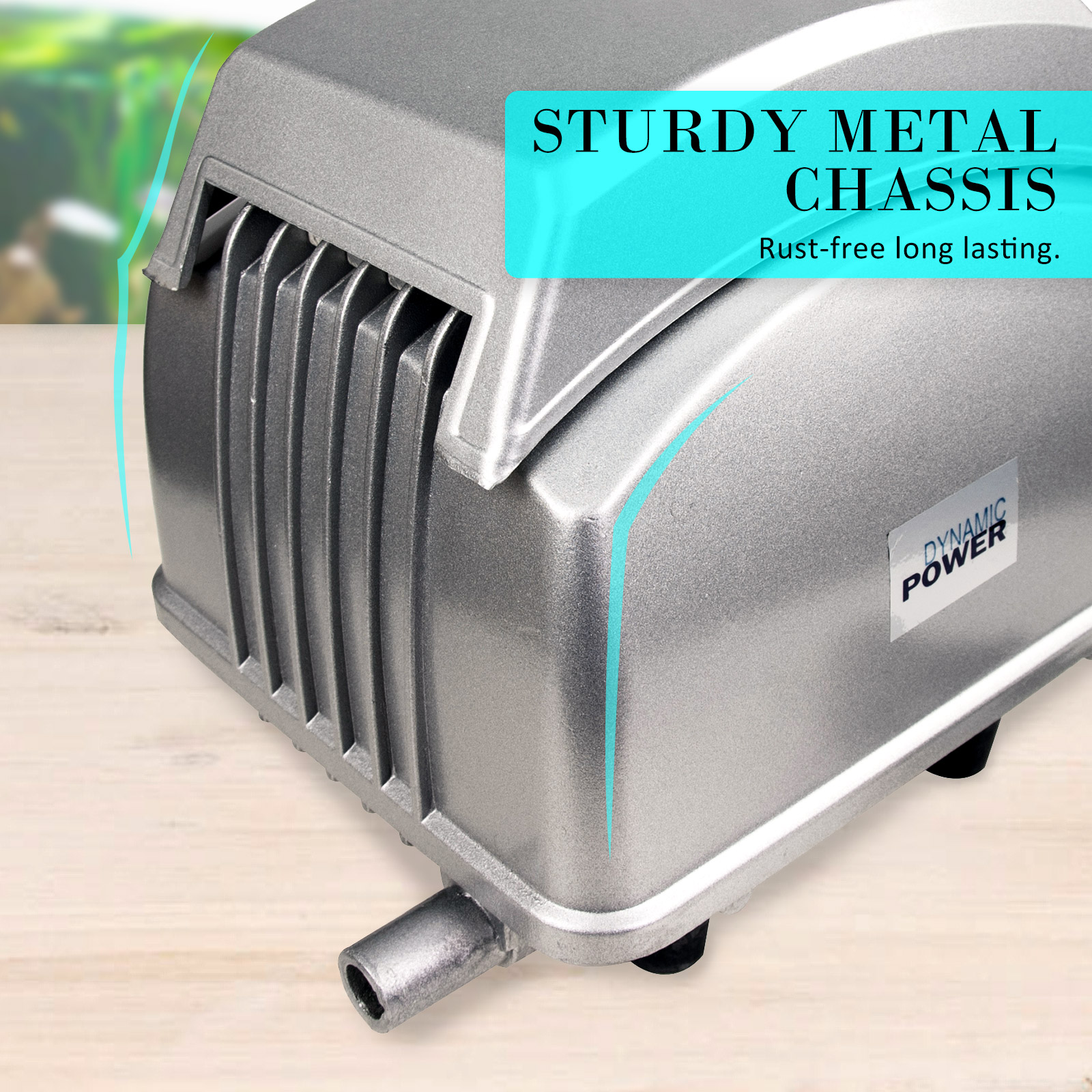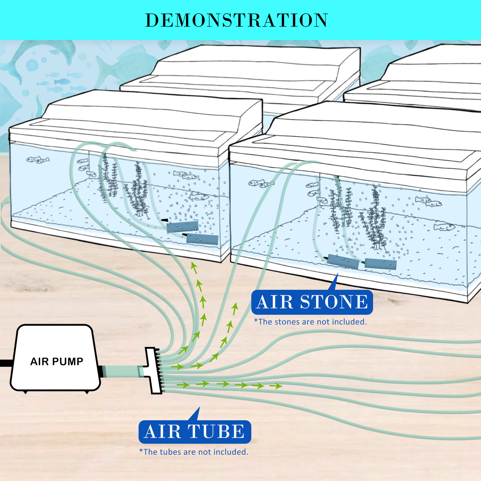 This aquarium air pump is a highly efficient and durable device designed to provide ample oxygenation for aquariums and ponds. It features multiple outlets to ensure even airflow distribution, supporting the health of fish and micro-organisms within the aquatic environment. Its quiet operation and compact design make it suitable for various applications, including medical, therapeutic, and commercial uses.