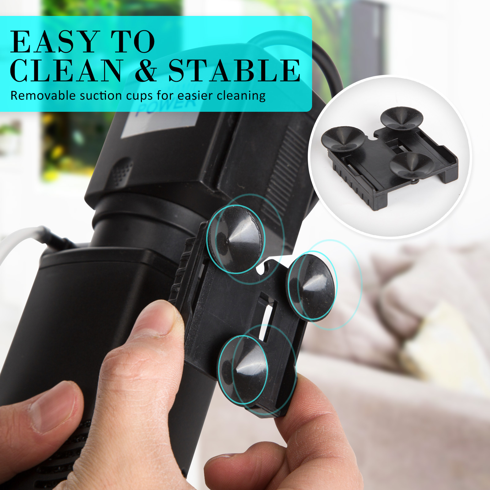 • Includes suction cups for easy attachment inside the tank