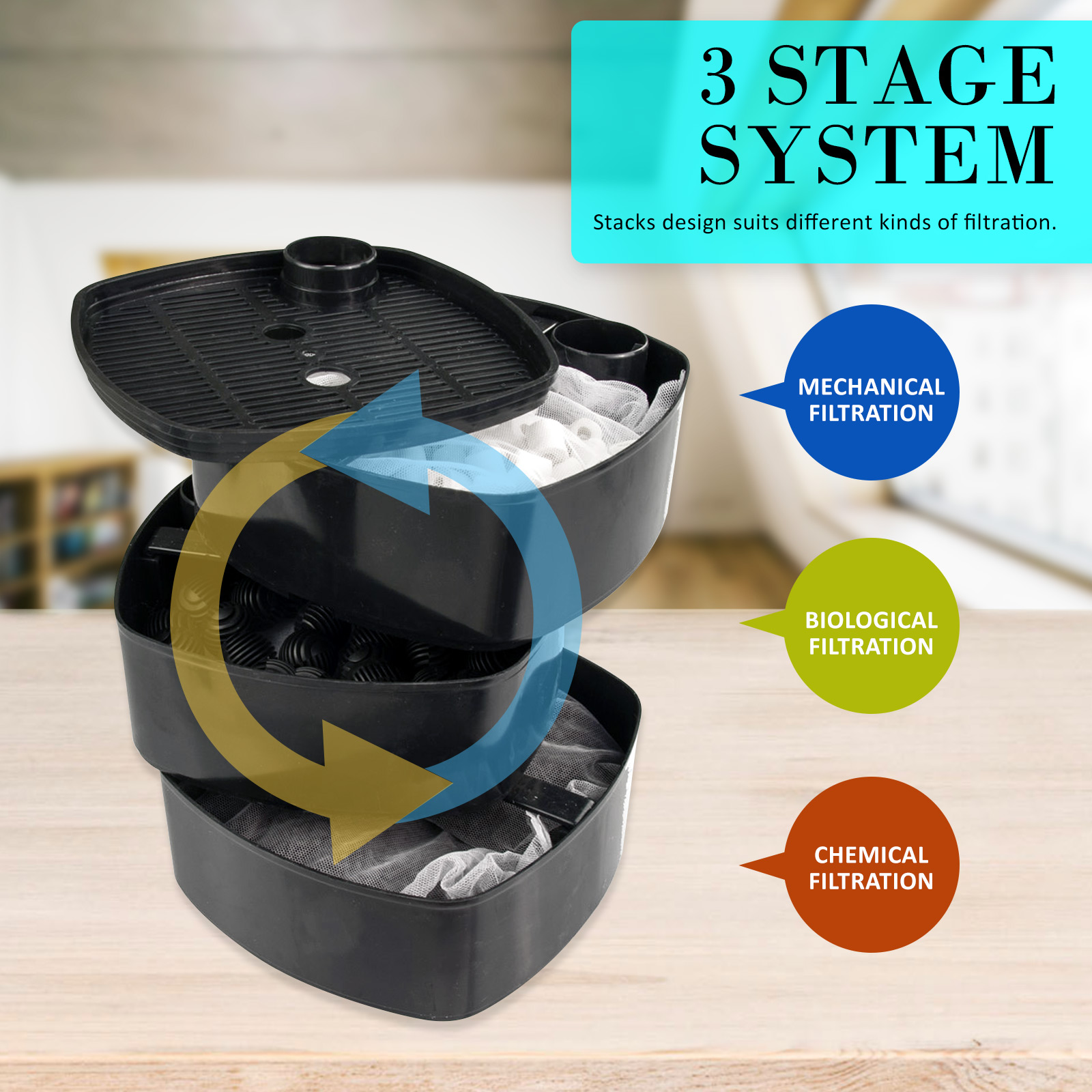 • Multi-level biological, mechanical, and chemical filtration system
