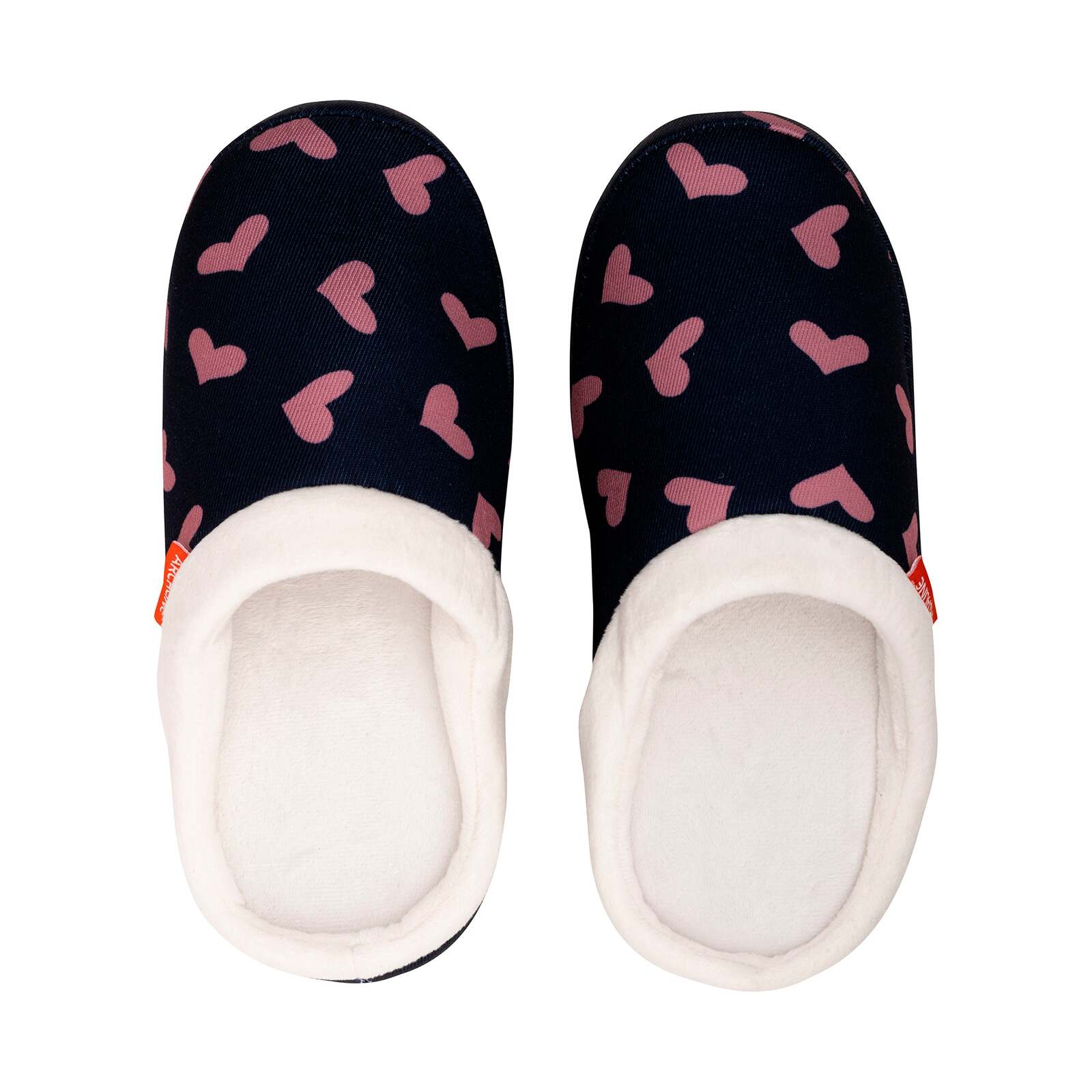 ARCHLINE Orthotic Slippers Slip On Scuffs Pain Relief Moccasins – Navy with Hearts – EUR 36 (Womens US 5)