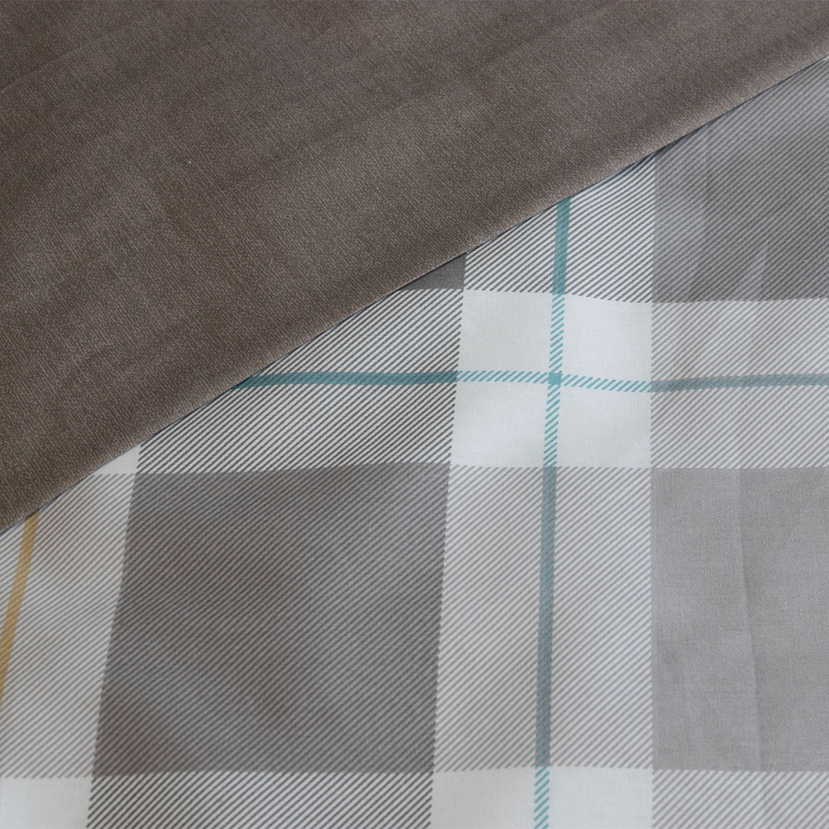 This quilt cover set features a stylish plaid design crafted from soft cotton sateen fabric, adding subtle character and vibrant touches to your bedroom decor. The set combines a comfortable feel with a modern aesthetic, perfect for enhancing your space.