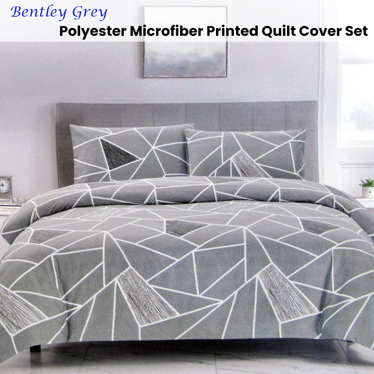 Artex Bentley Grey Quilt Cover Set Geometric Pattern Reversible Printed Microfiber Polyester Queen