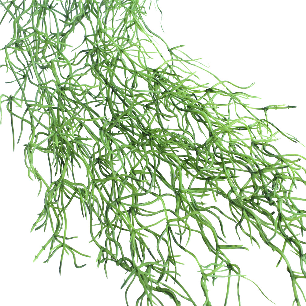 This artificial Spanish moss hanging vine provides a quick and easy way to create a lush green environment indoors. Its natural appearance makes it a versatile decorative element for floral arrangements or hanging from ceilings, adding a touch of greenery to any space.