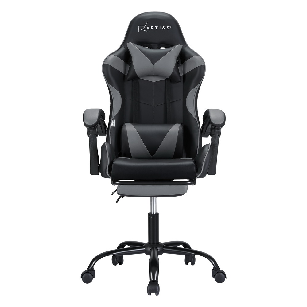 Artiss 2 Point Massage Gaming Office Chair Footrest Grey
