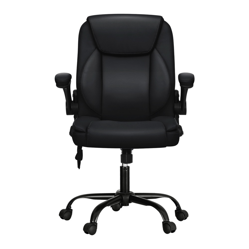 Artiss 2 Point Massage Office Chair Leather Mid Back Black