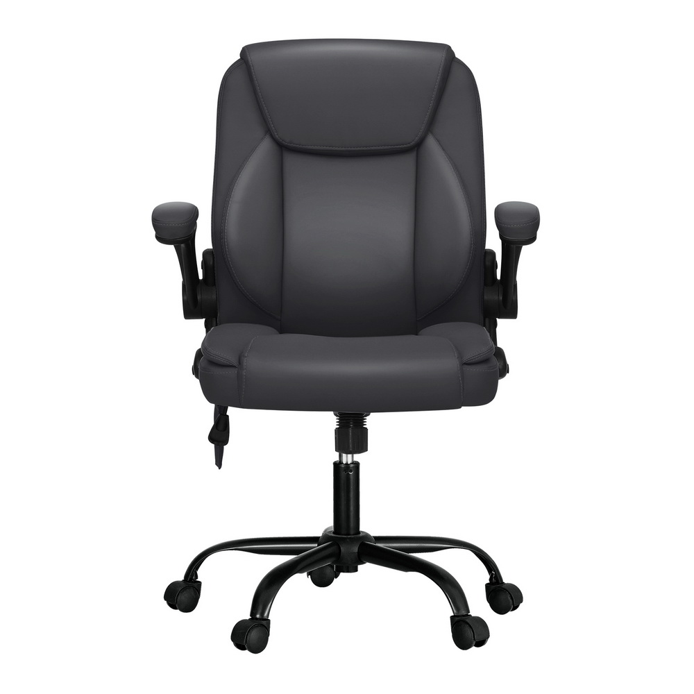 Artiss 2 Point Massage Office Chair Leather Mid Back Grey